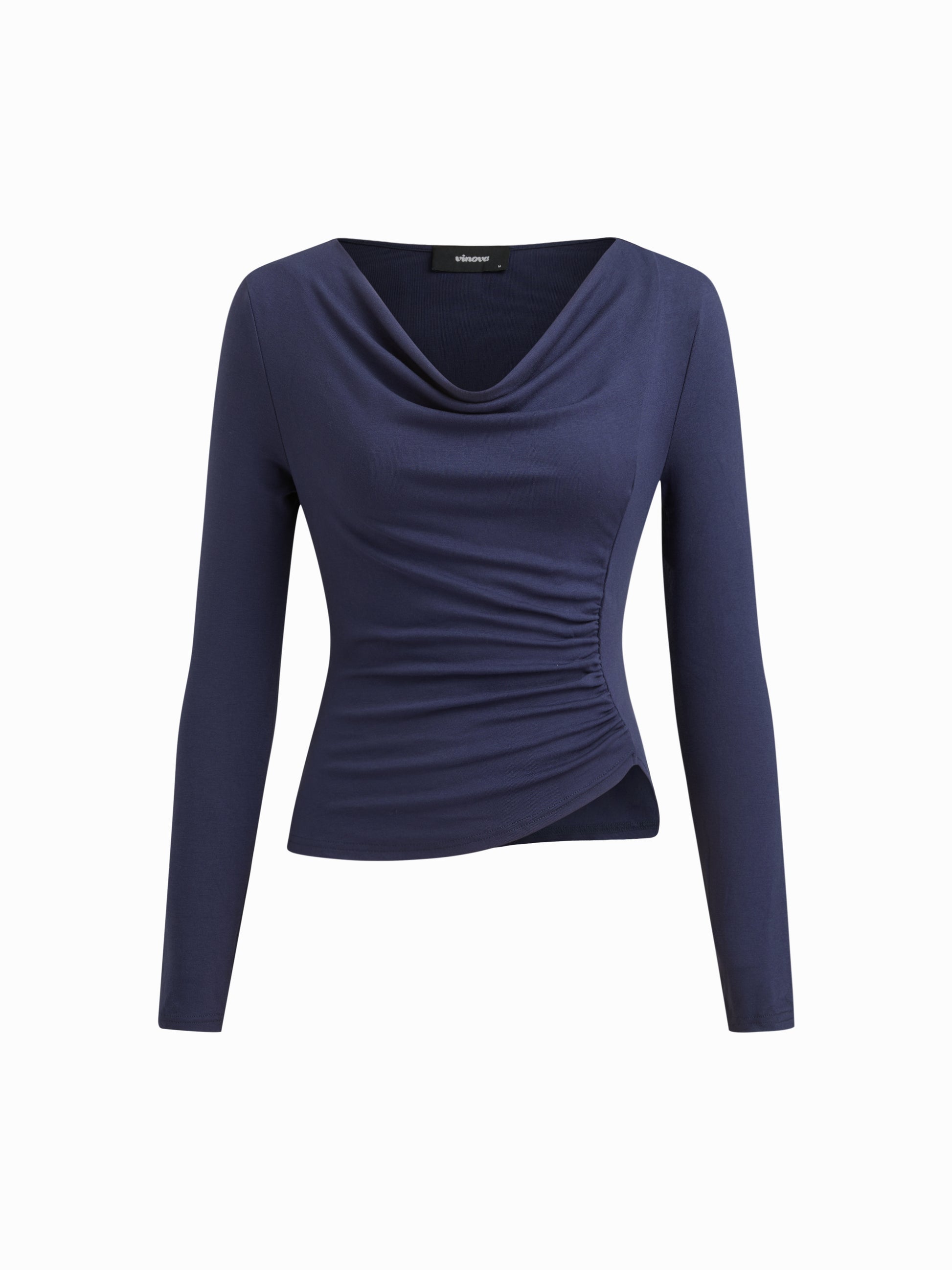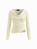 Cowl Neck Long Sleeve Stretchy Casual Top