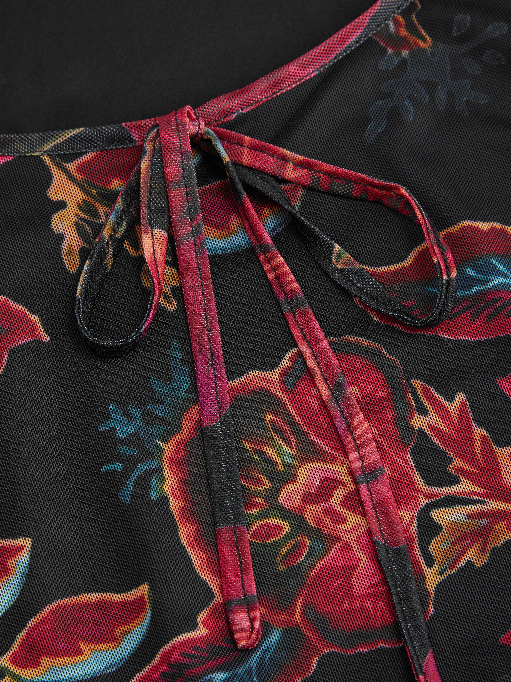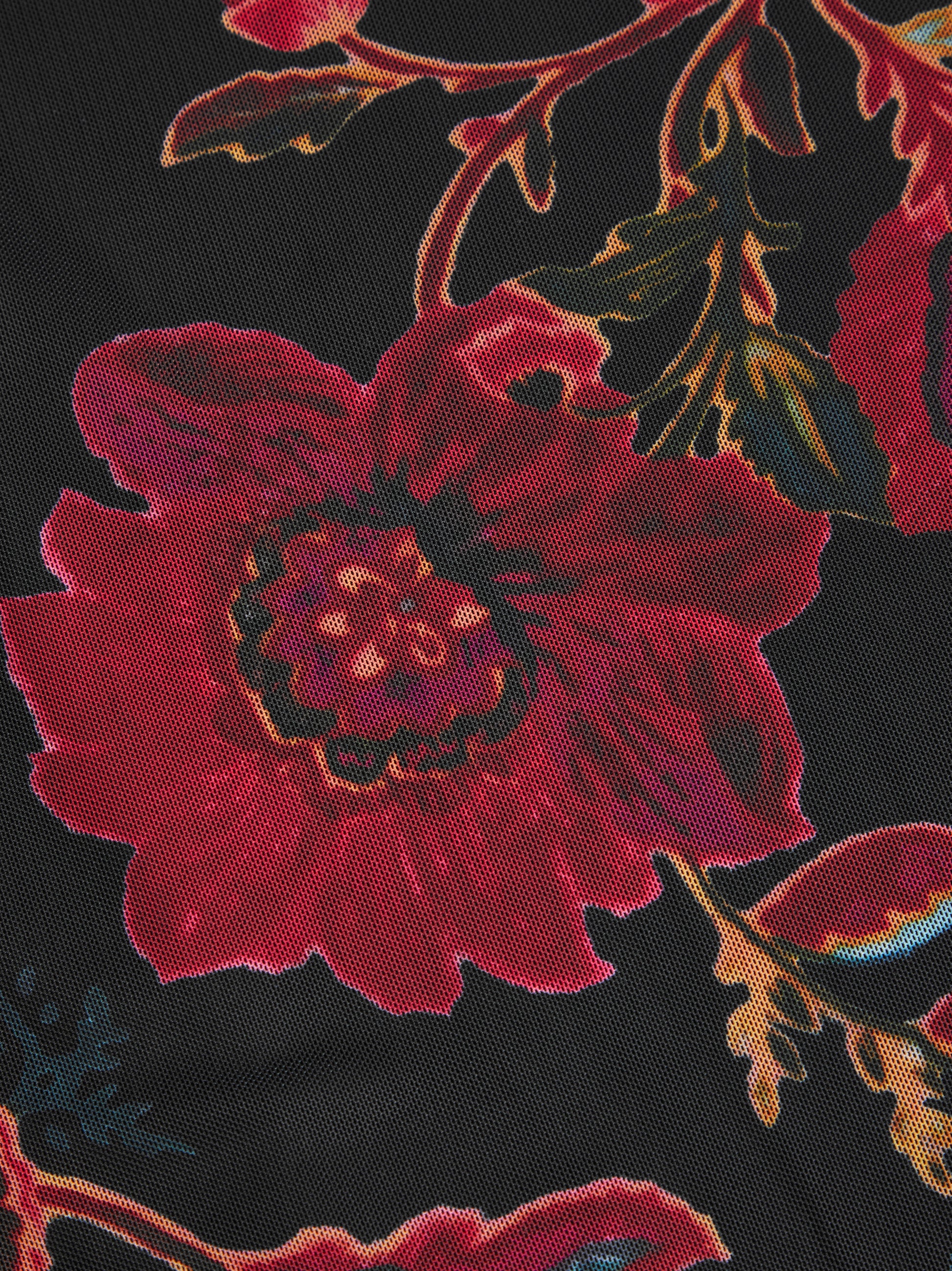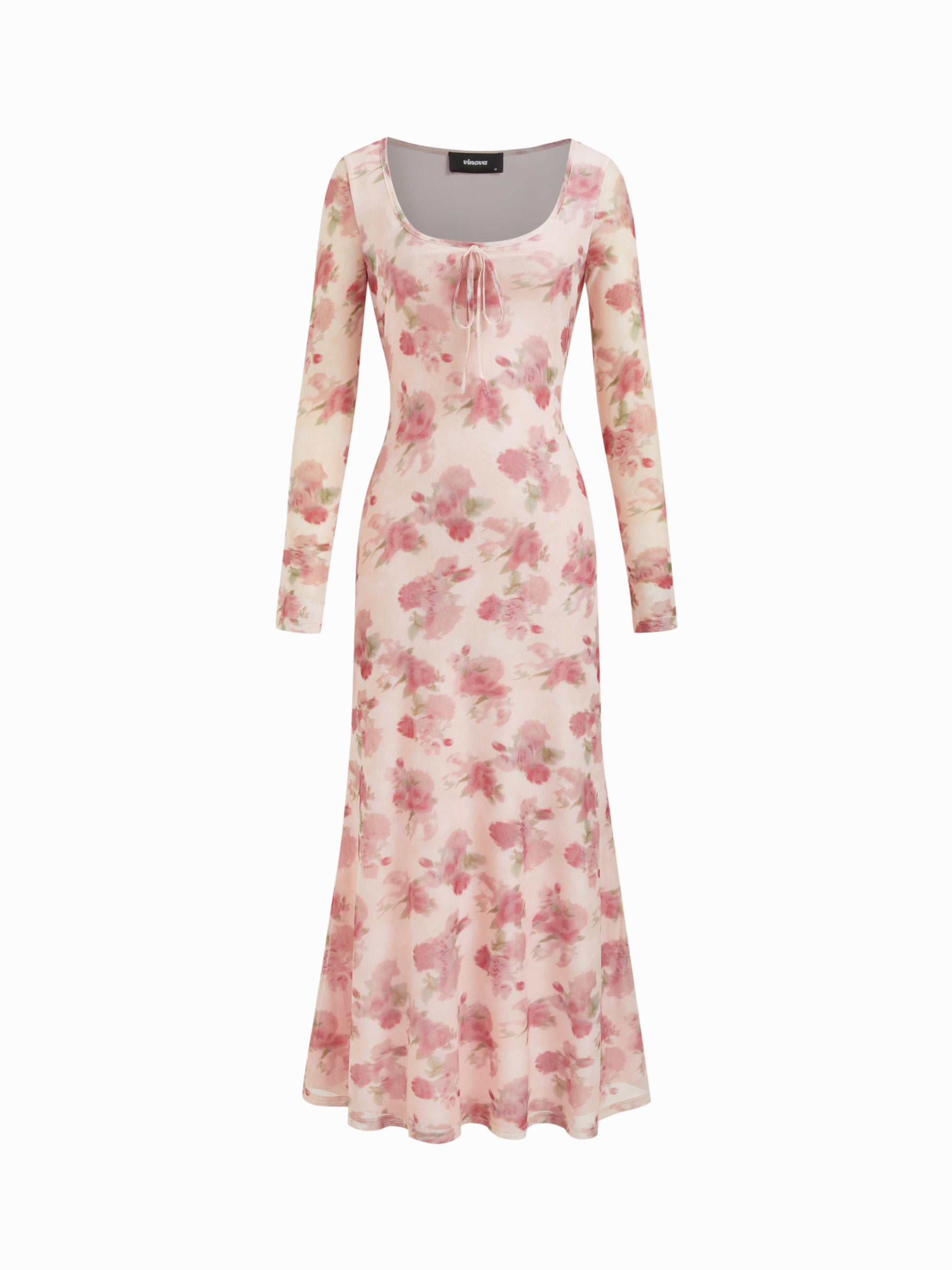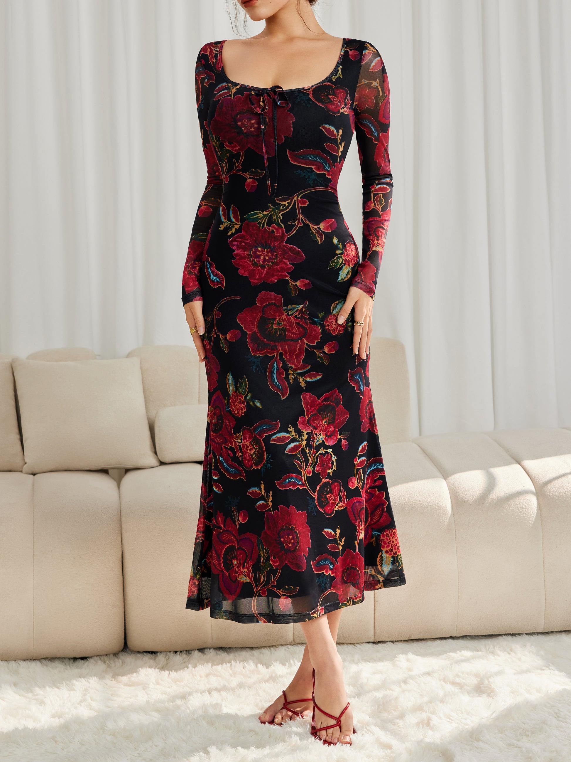 Floral Mesh Long Sleeve Maxi Square Neck Dress