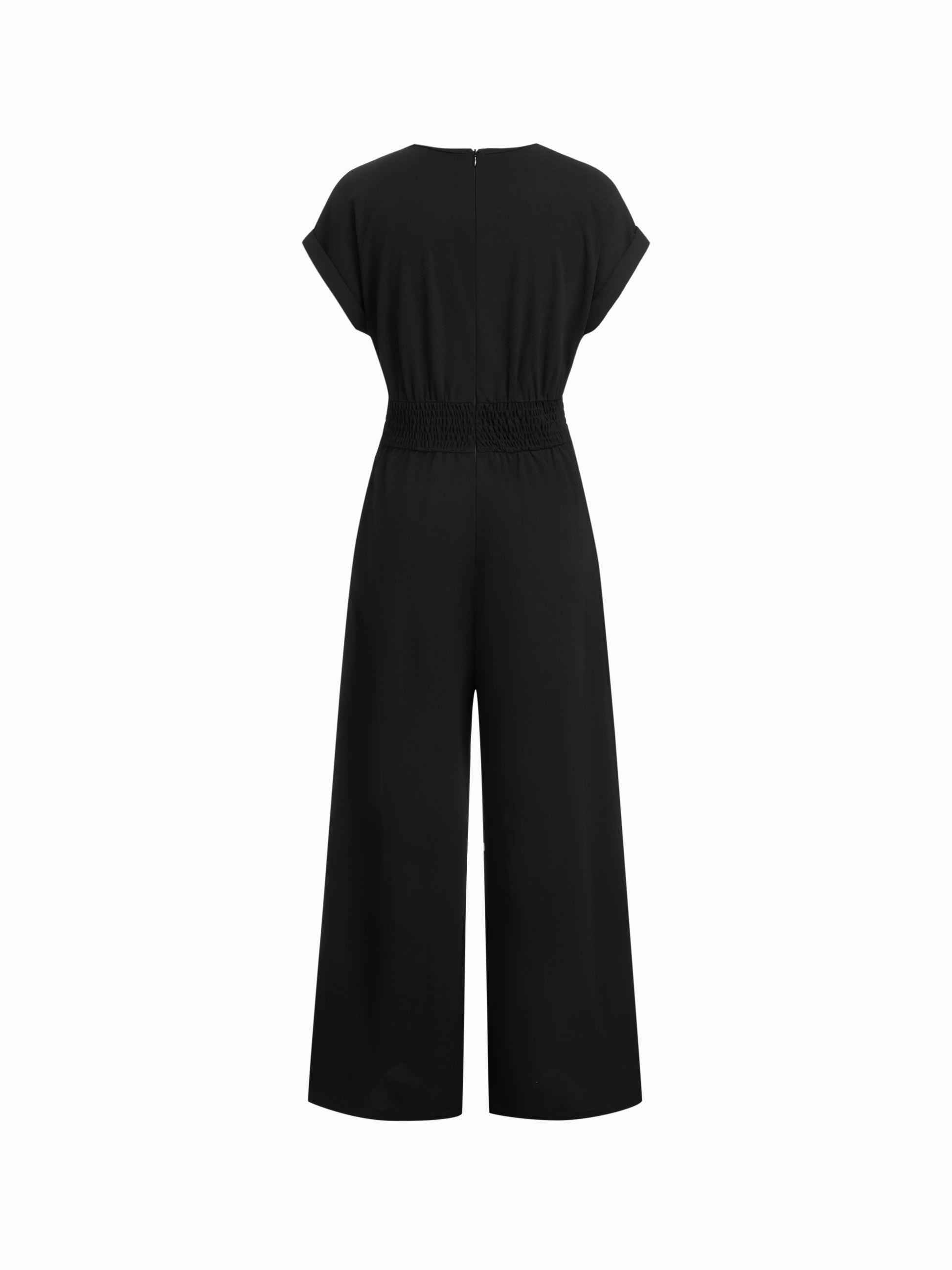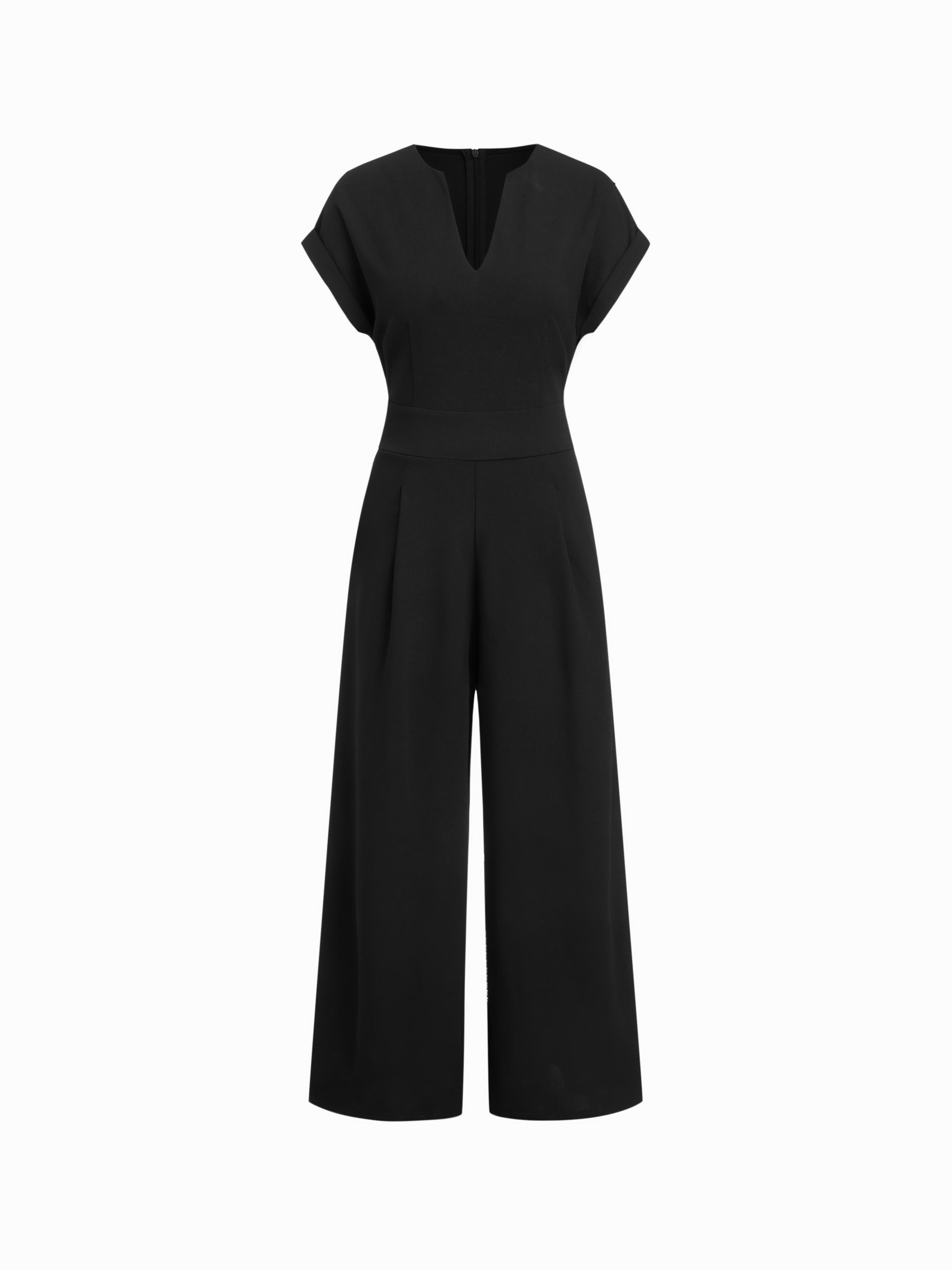 High-stretch Solid Cap Sleeves V-neck Jumpsuits