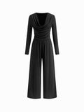 High Stretch Solid Cowl Neck Jumpsuits