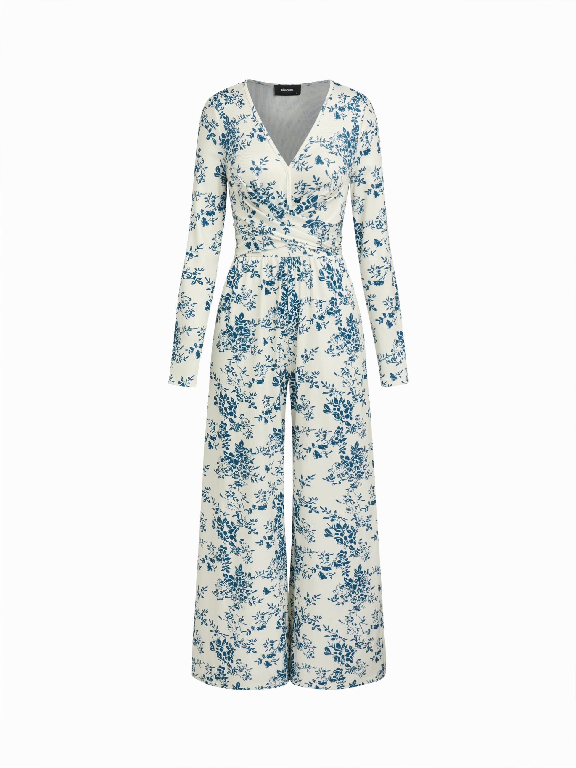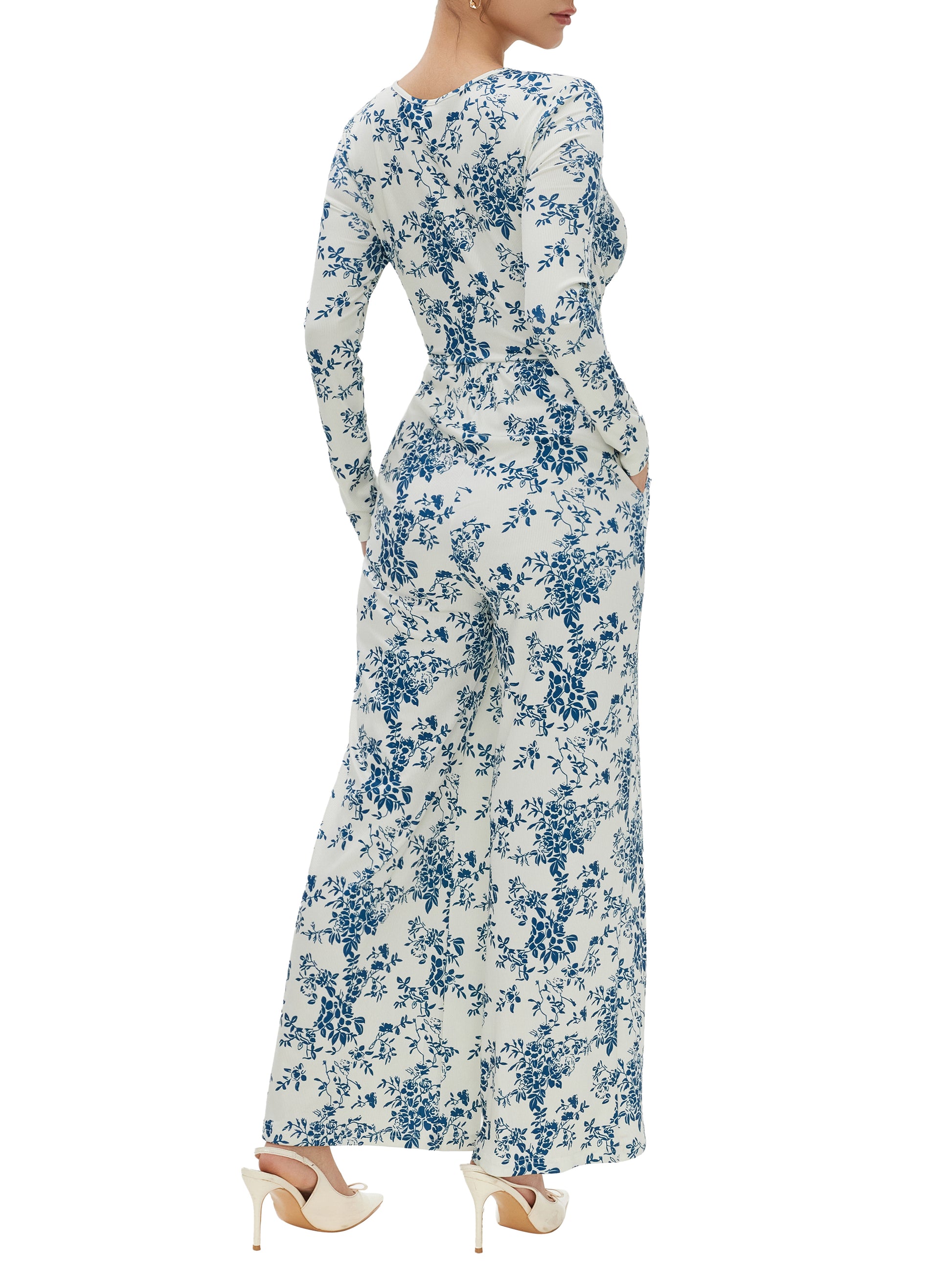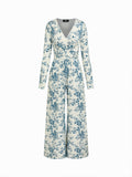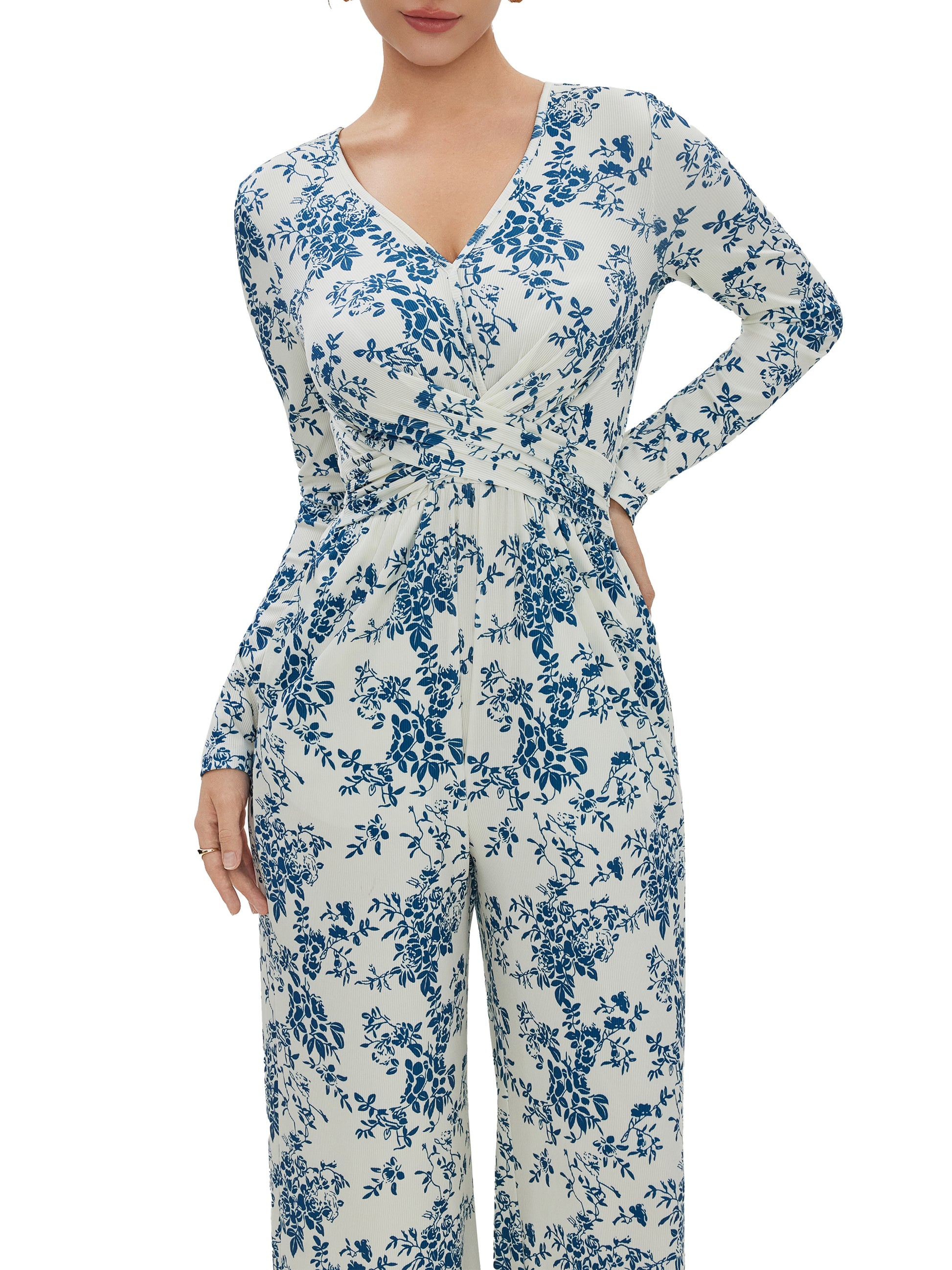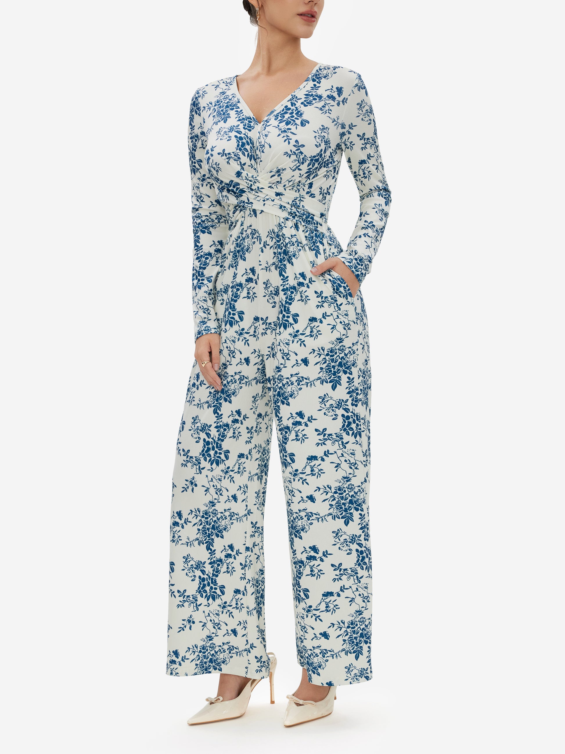 High-stretch V-Neck Floral Jumpsuits with Pockets