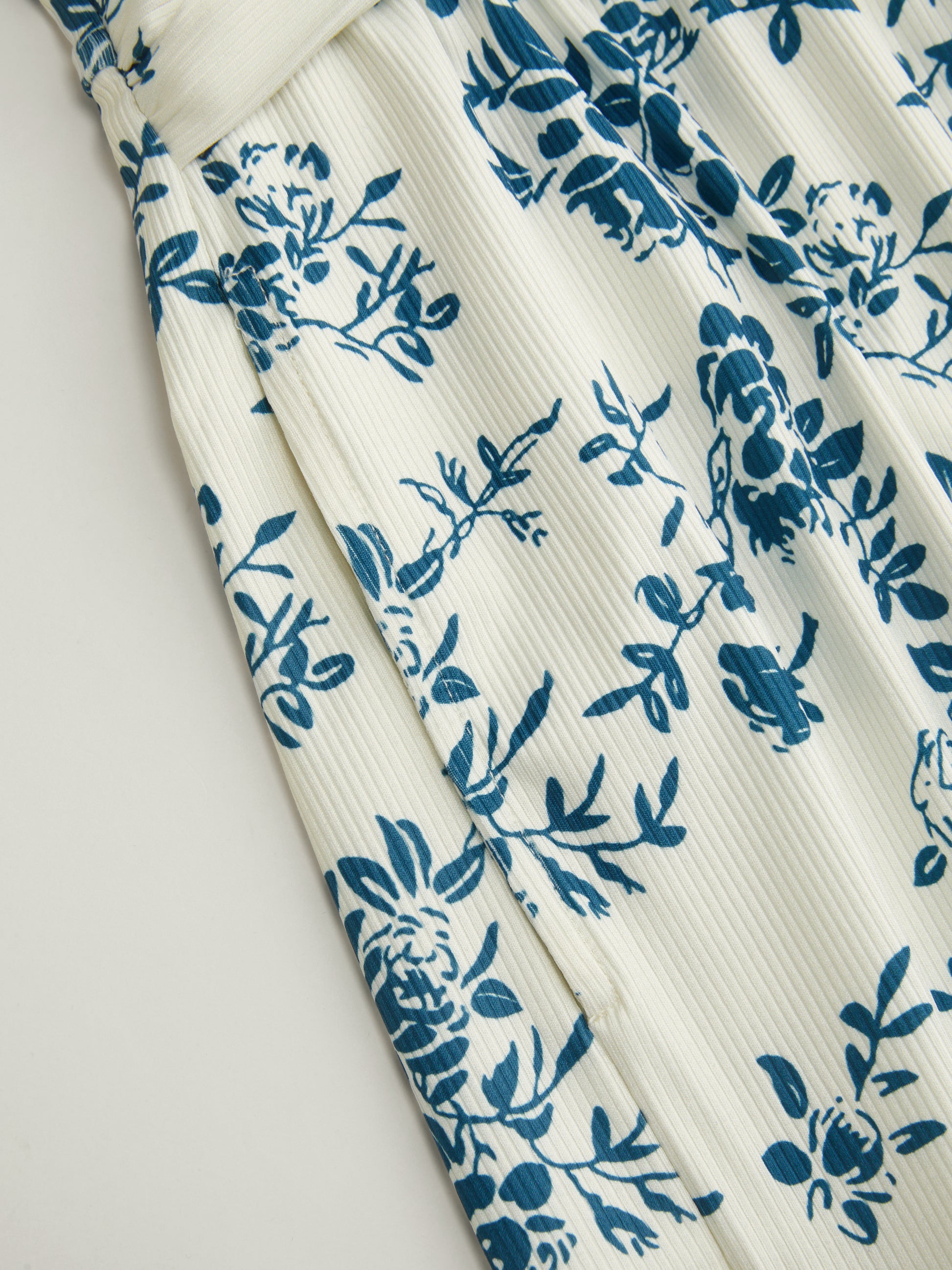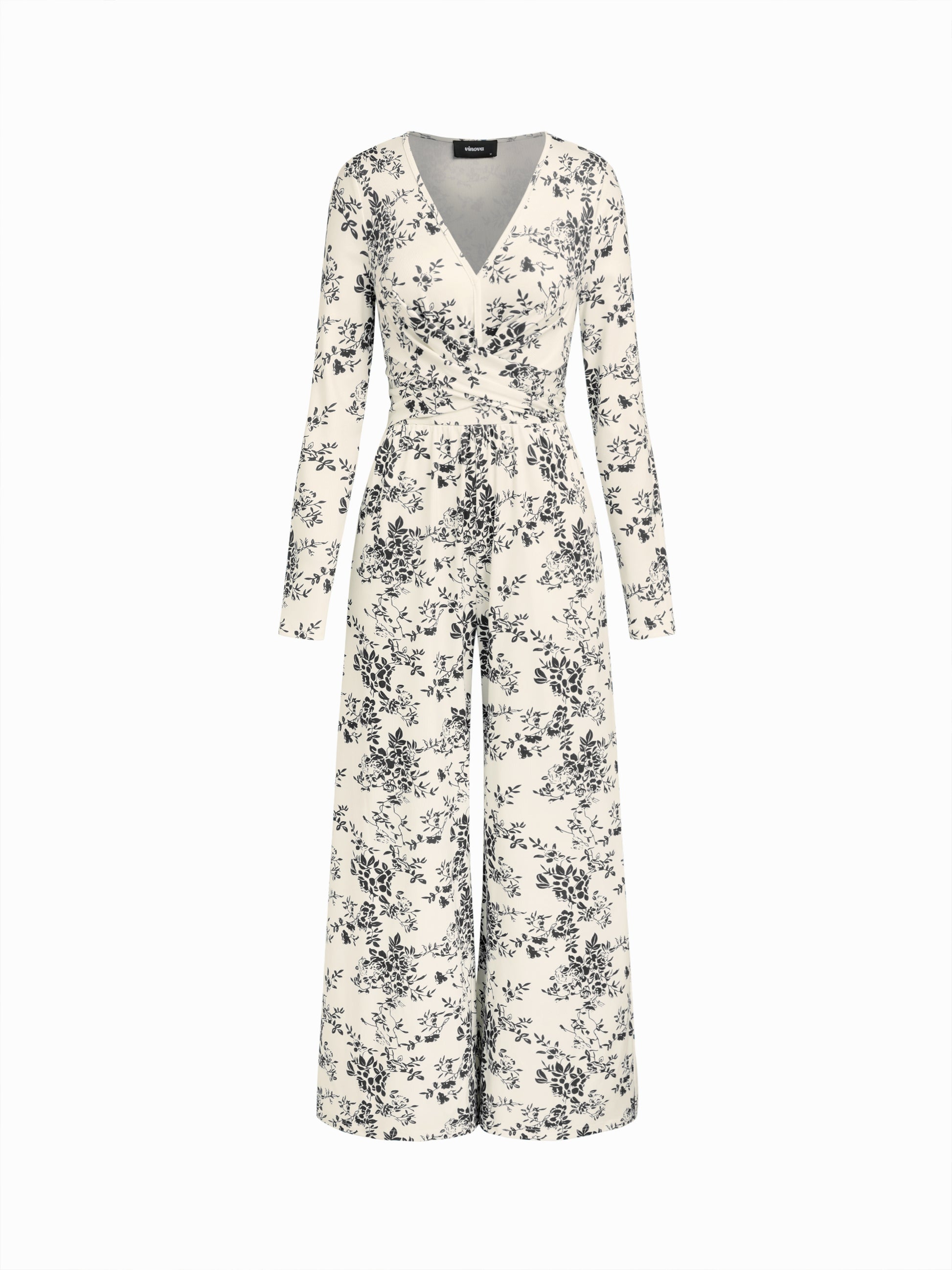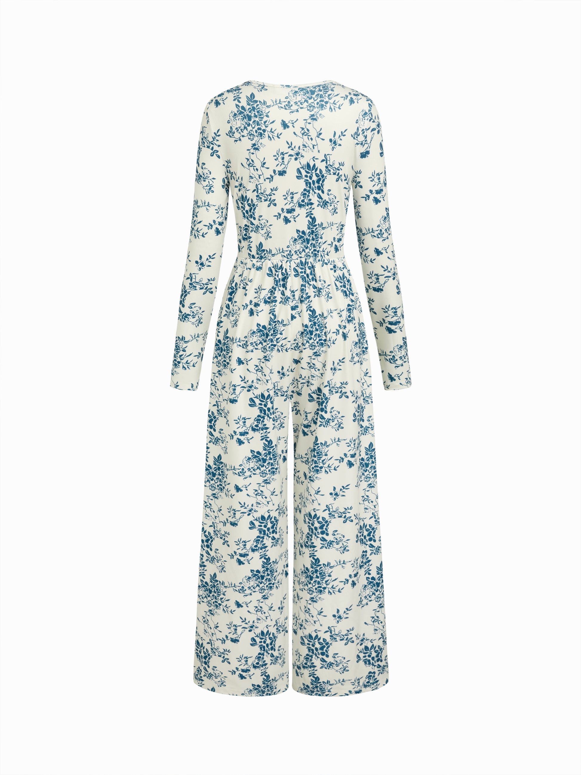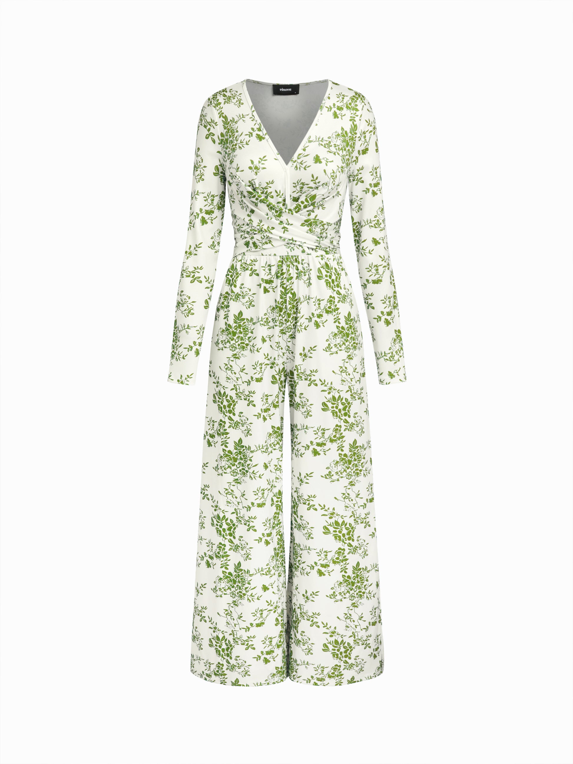 High-stretch V-Neck Floral Jumpsuits with Pockets