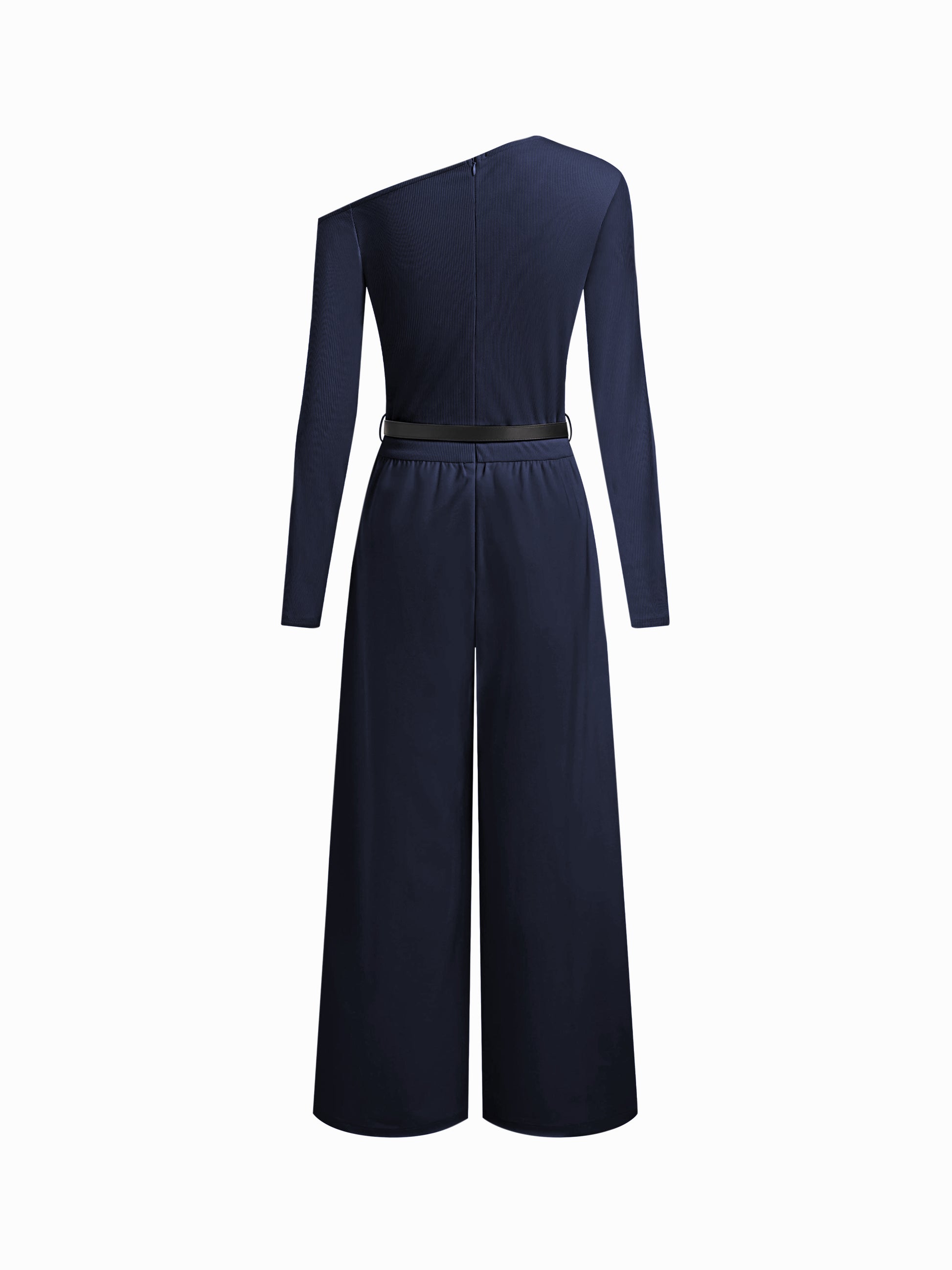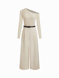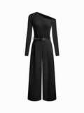 One Shoulder Belted Wide Leg Long Sleeve Jumpsuits