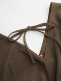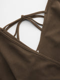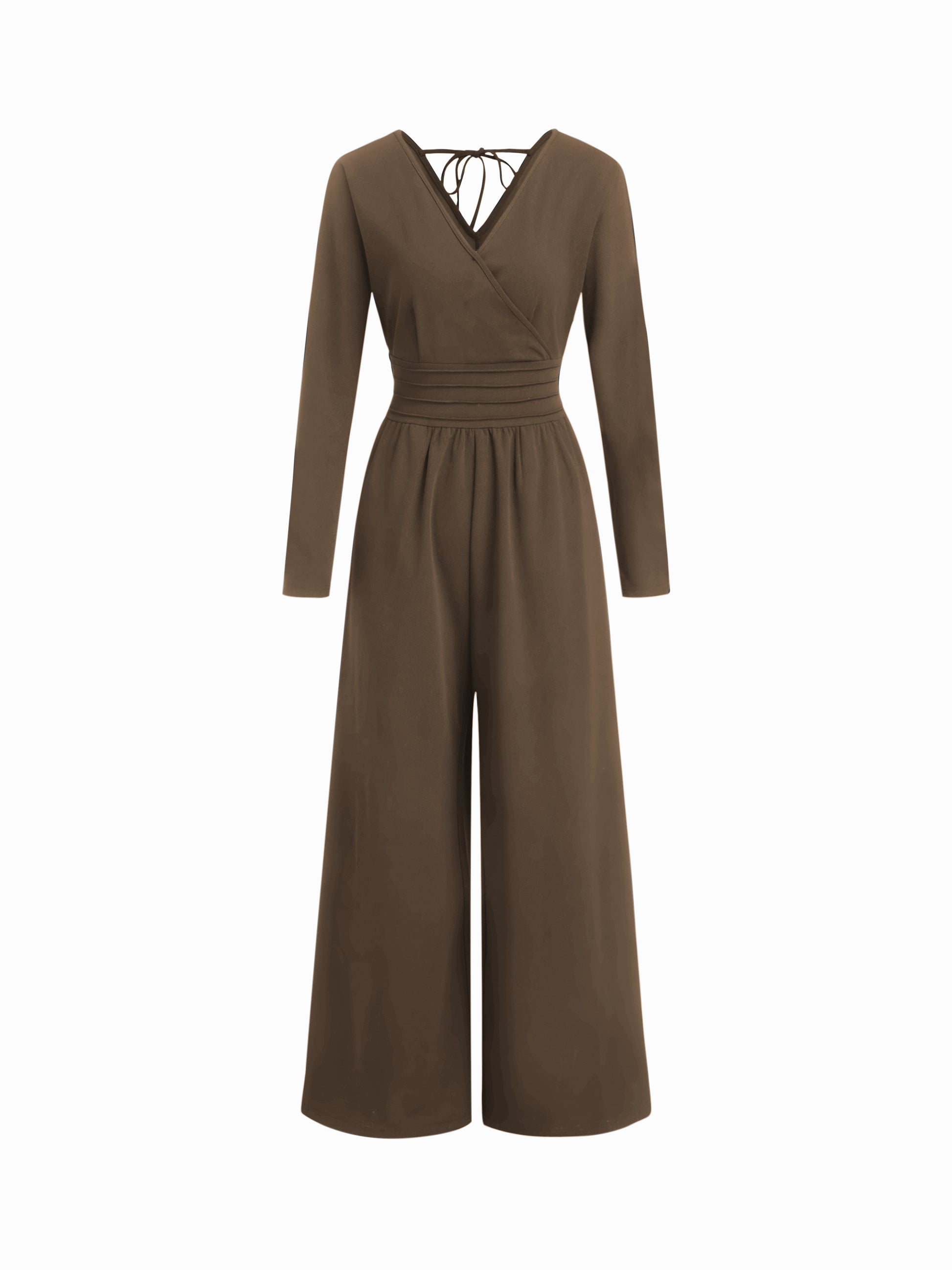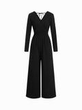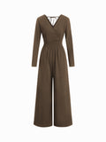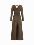 Solid V-Neck Ruched Jumpsuit with Pockets