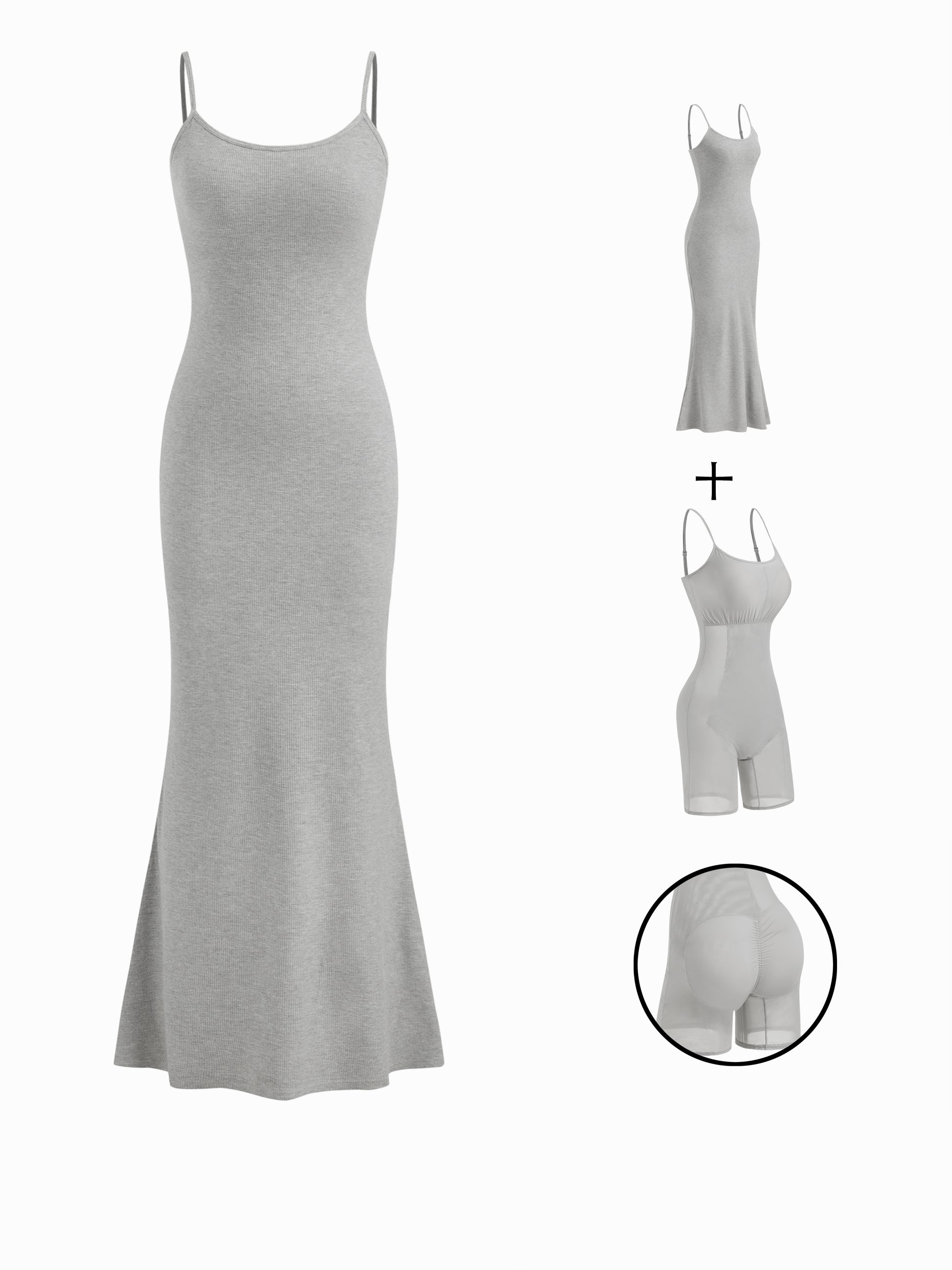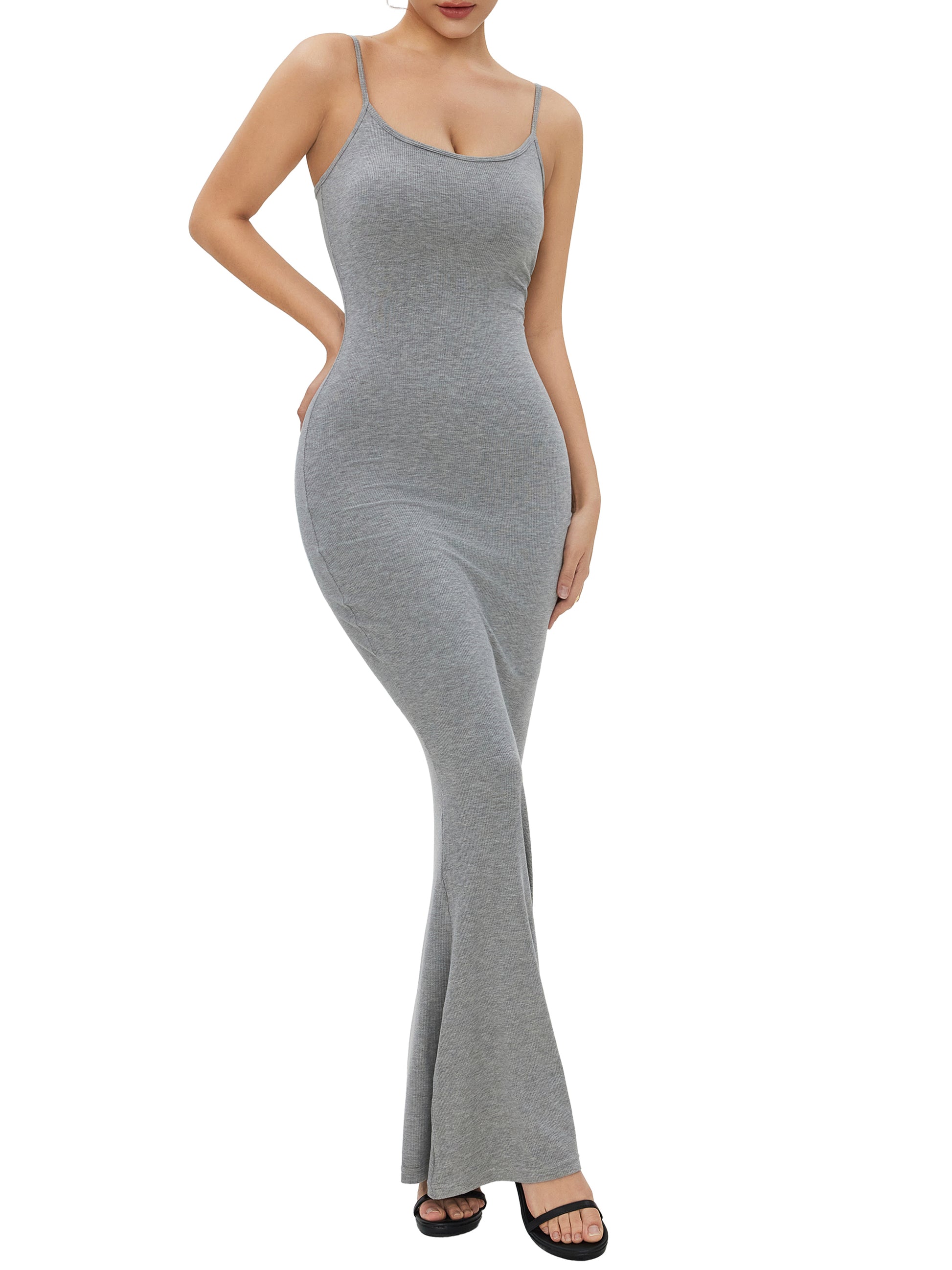 Spaghetti Strap Maxi Dress with Bra Pads and Shapewear