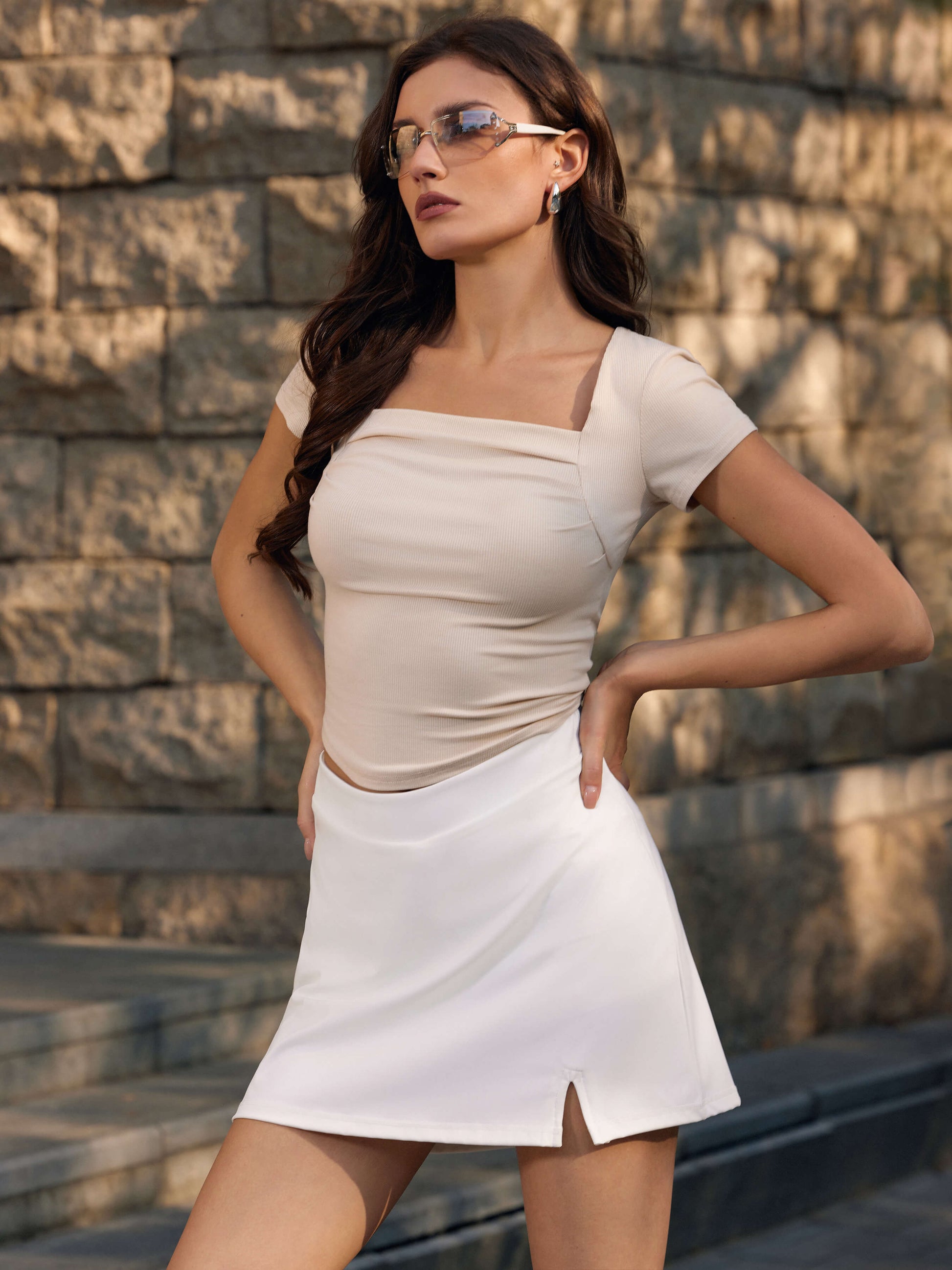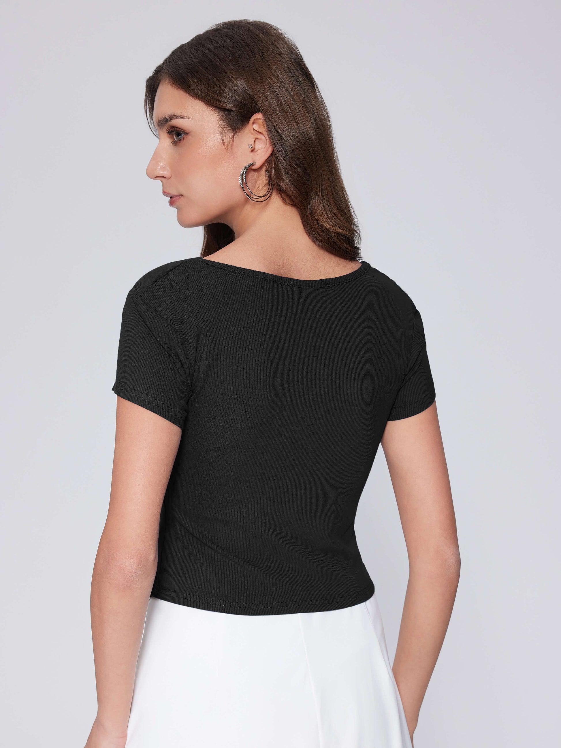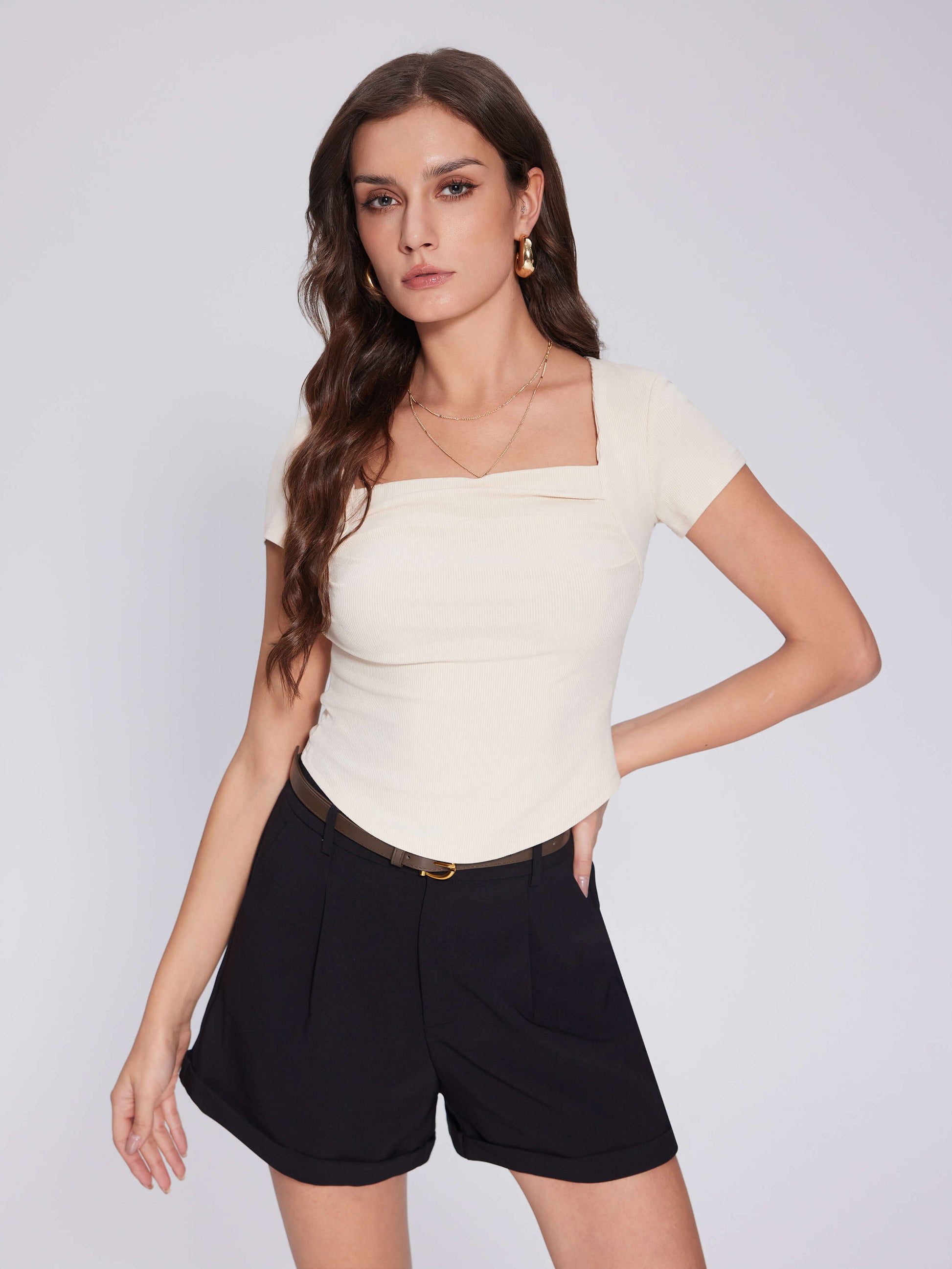 - Flattering square neckline: The square neck adds a touch of elegance and sophistication to this basic going out tops, framing the collarbones and creating a visually appealing silhouette. It elevates the simple design, making it suitable for both casual and slightly dressier occasions, offering a modern and stylish alternative to traditional tees, and allowing you to accessorize with necklaces or scarves to further enhance your look and express your personal style with ease