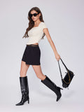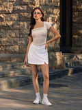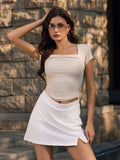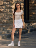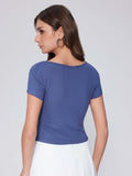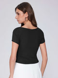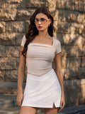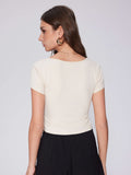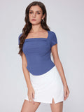 Summer Going Out Tops Ruched Square Neck Short Sleeve Slim Fit Tops