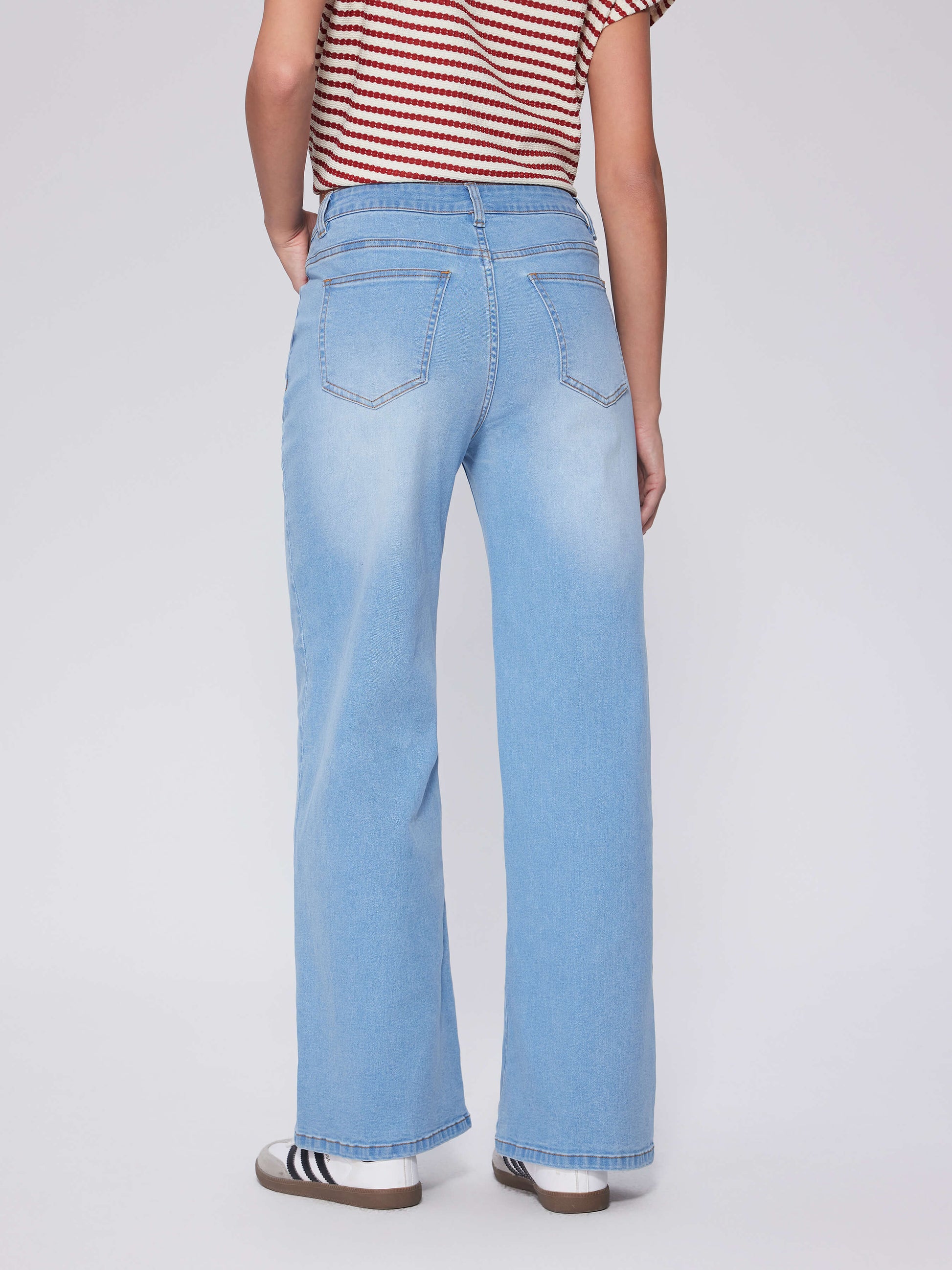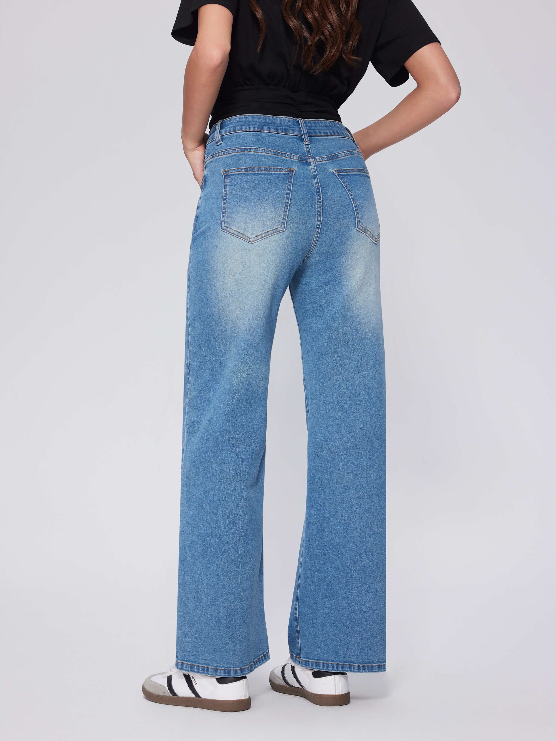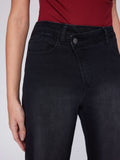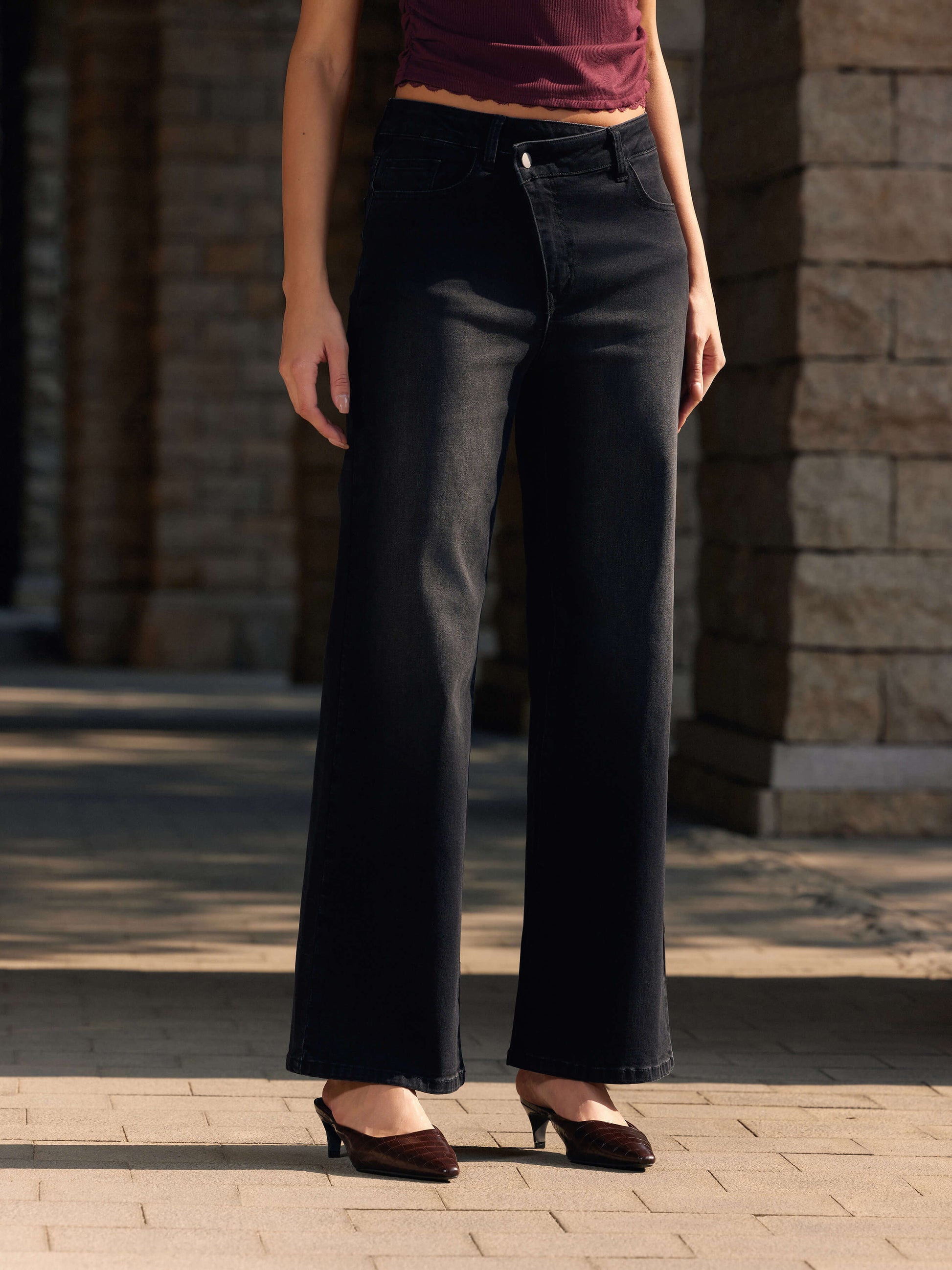 Stretchy Cross Fly High Waisted Wide Leg Baggy Jeans with Pockets