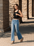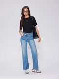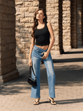 - Flattering Mid-Rise Waistline: Featuring a mid-rise waistline, these jeans offer a universally flattering fit that sits comfortably on the hips. This design provides ample coverage and support while accentuating the natural curves of the body. The mid-rise cut is versatile enough to pair with a variety of tops, from tucked-in blouses to crop tops, making these jeans a staple piece in any wardrobe. Embrace a comfortable and stylish silhouette with these thoughtfully designed jeans