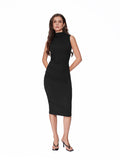 - Ruched Design: Featuring flattering ruched detailing on the sides, this sleeveless midi dress creates a beautiful, body-defining silhouette. The bodycon fit adds an elegant touch, making it a perfect choice for casual or semi-formal occasions