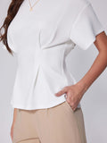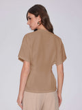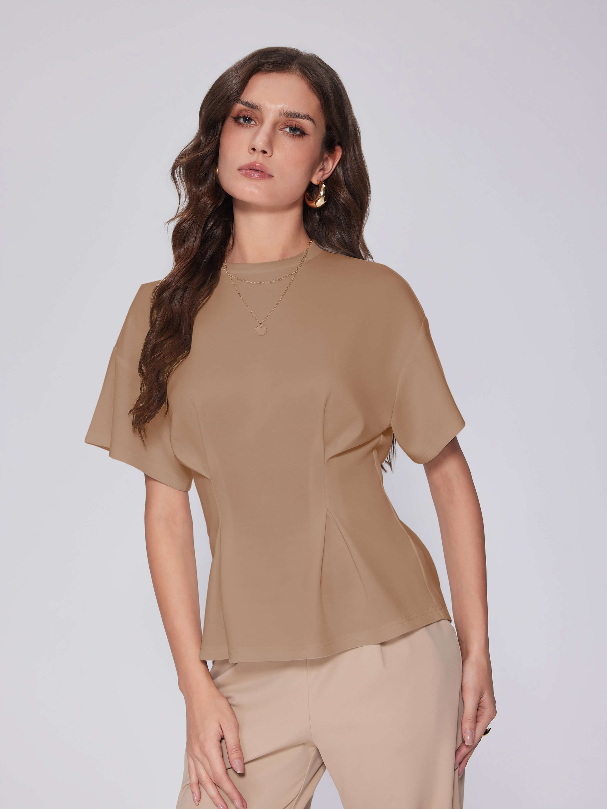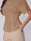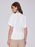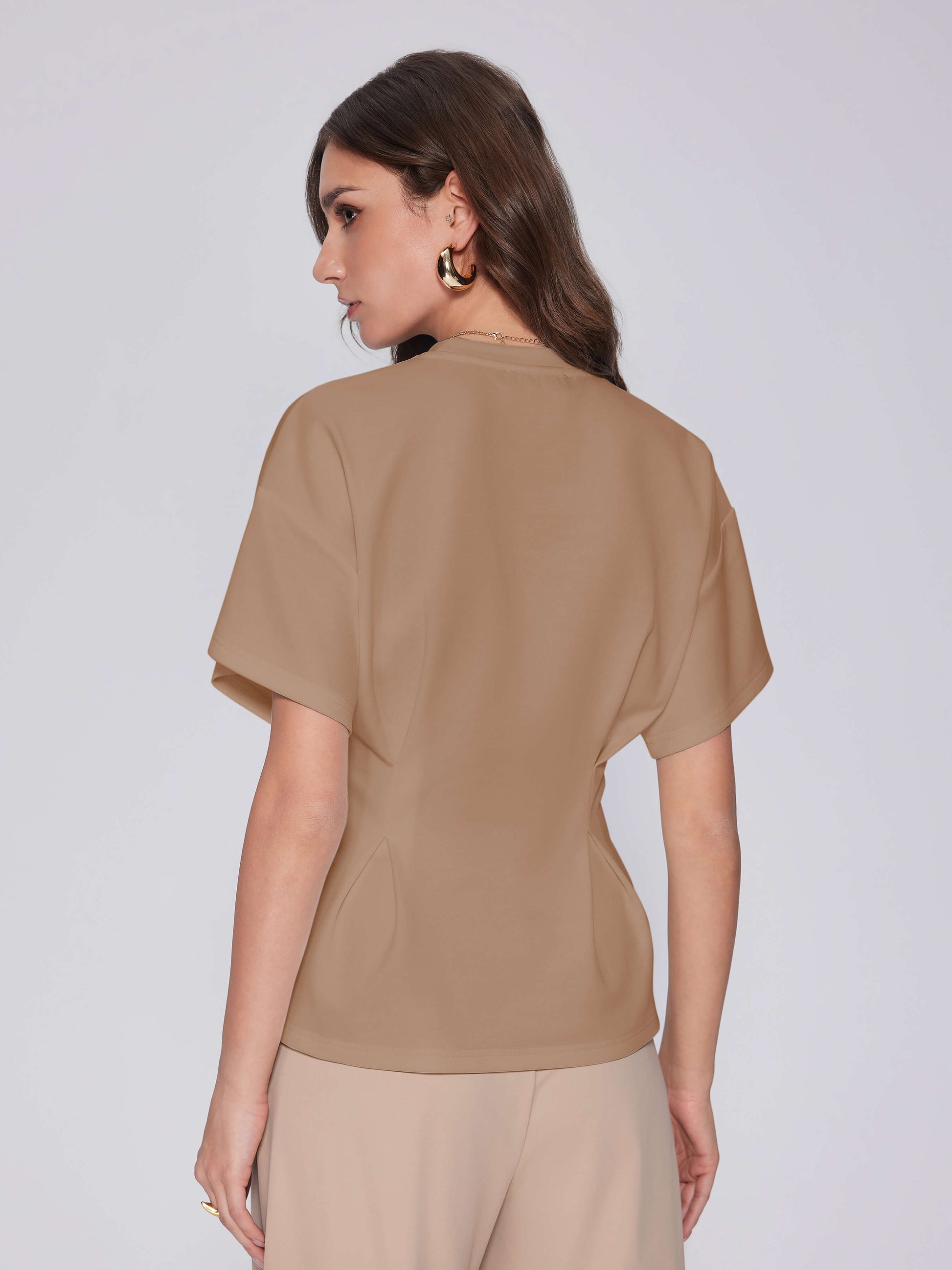 - Chic ruched detailing: Featuring ruched detailing, this t shirt blouse adds a touch of texture and visual interest to your outfit, elevating the basic design with a subtle yet stylish element, and making it a standout piece that enhances the overall aesthetic, adding a unique twist to the classic tee