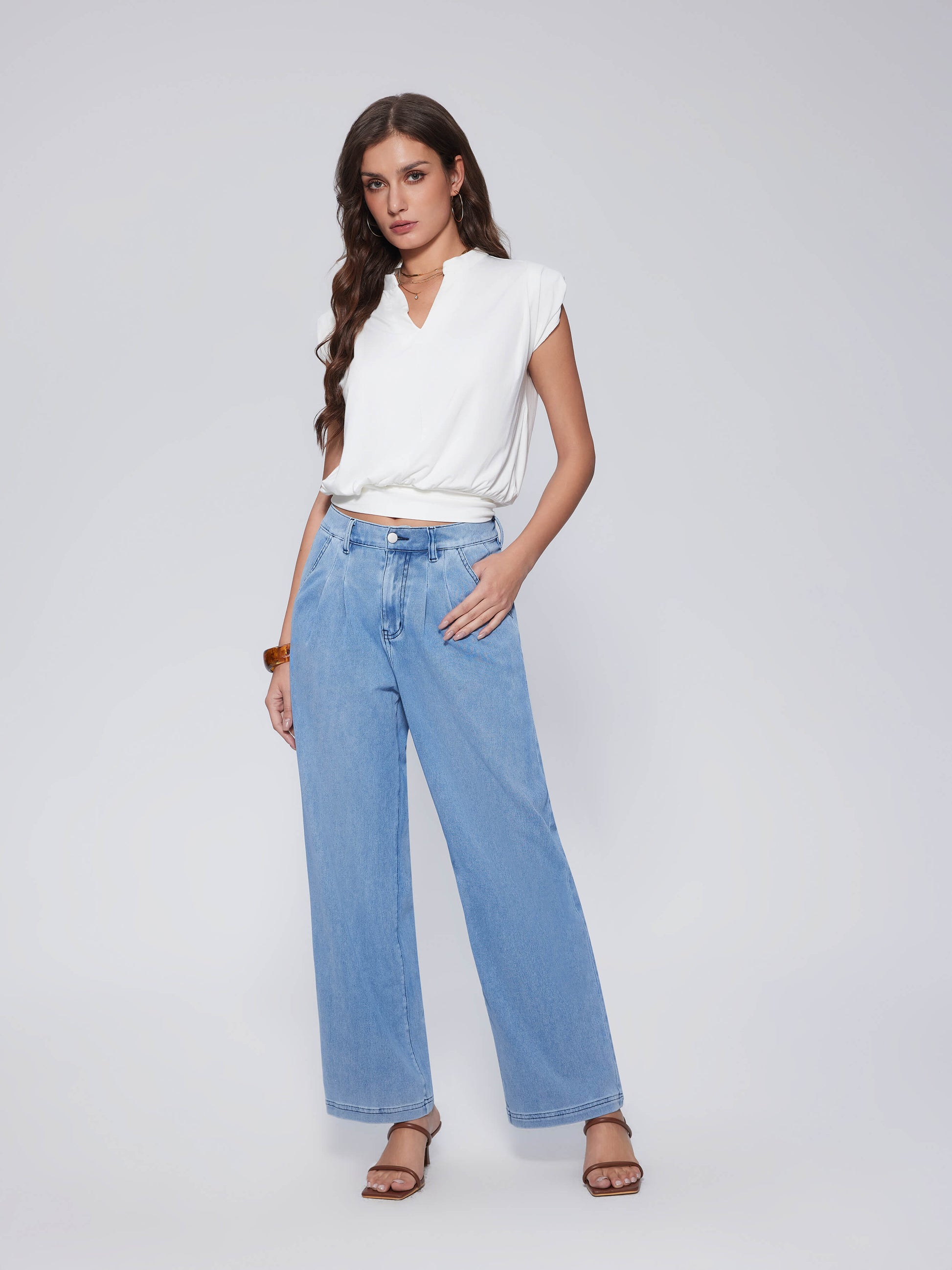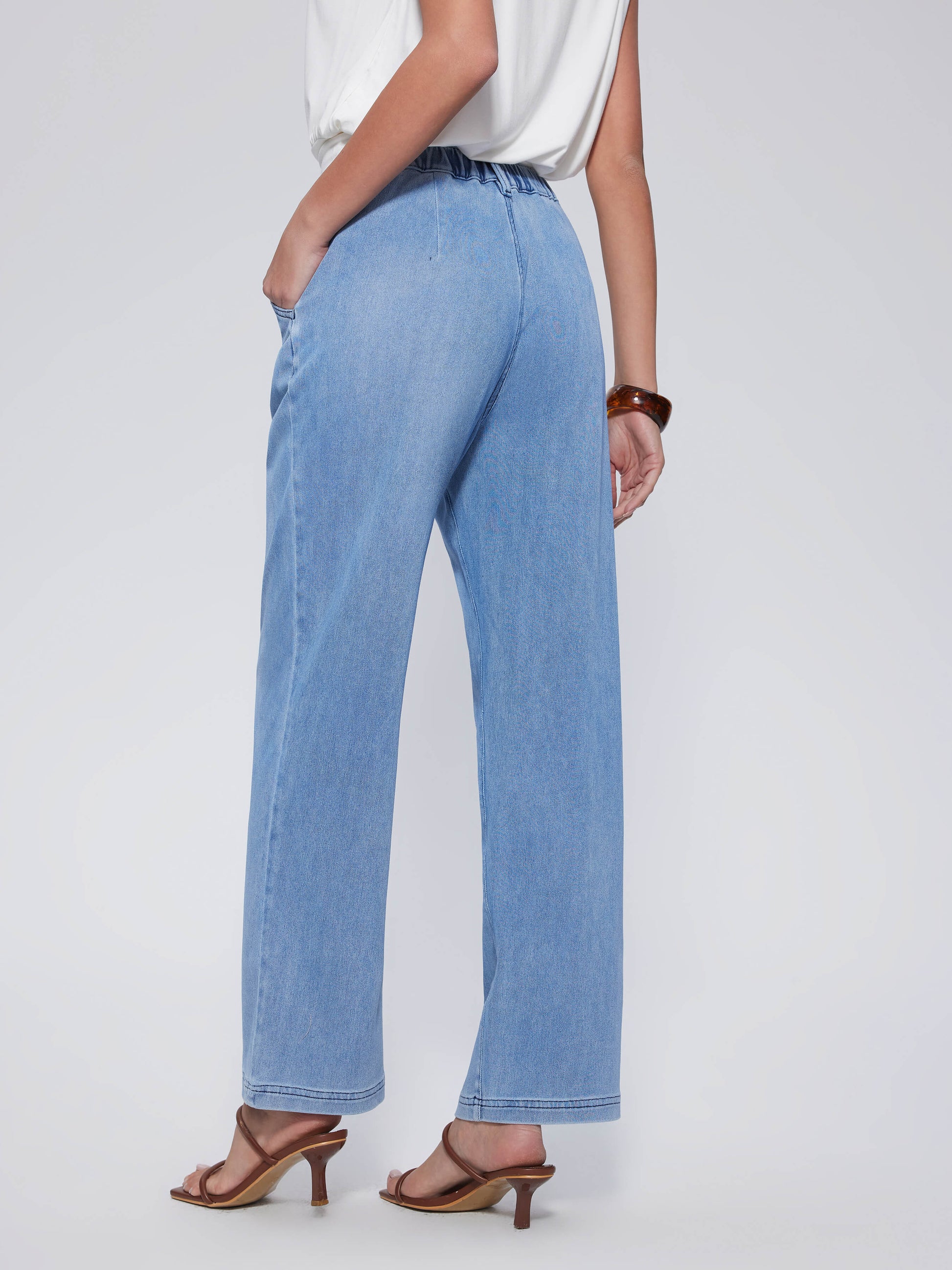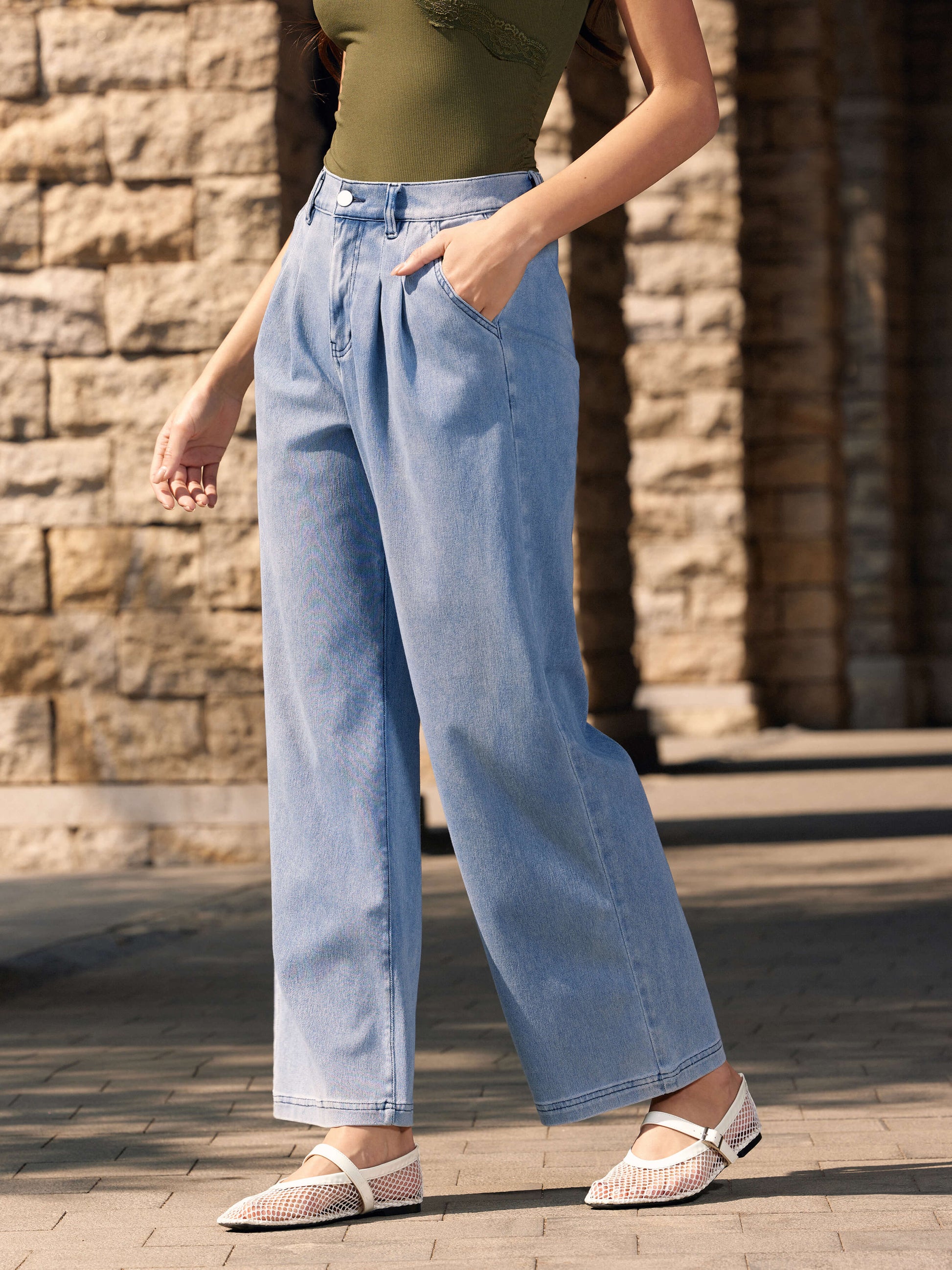 - Comfortable and breathable denim with high stretch: Crafted from denim material, these wide-leg jeans offer a blend of durability and breathability, making them suitable for all-day wear. The high stretch fabric ensures a comfortable fit that moves with you, providing flexibility and ease of movement, whether you're running errands or relaxing at home. The moderate fabric sheerness strikes a balance between coverage and breathability
