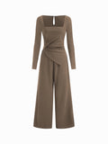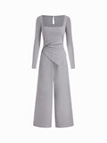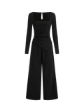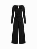 Women's Black Square Neck Long Sleeve Jumpsuit Wide Leg