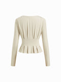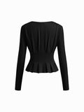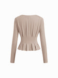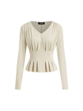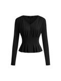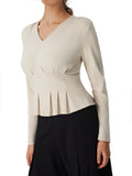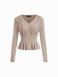 Women's Elegant V Neck Long Sleeve Peplum Blouse Office Work Top