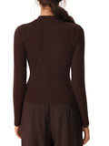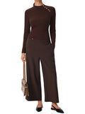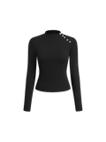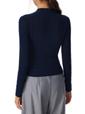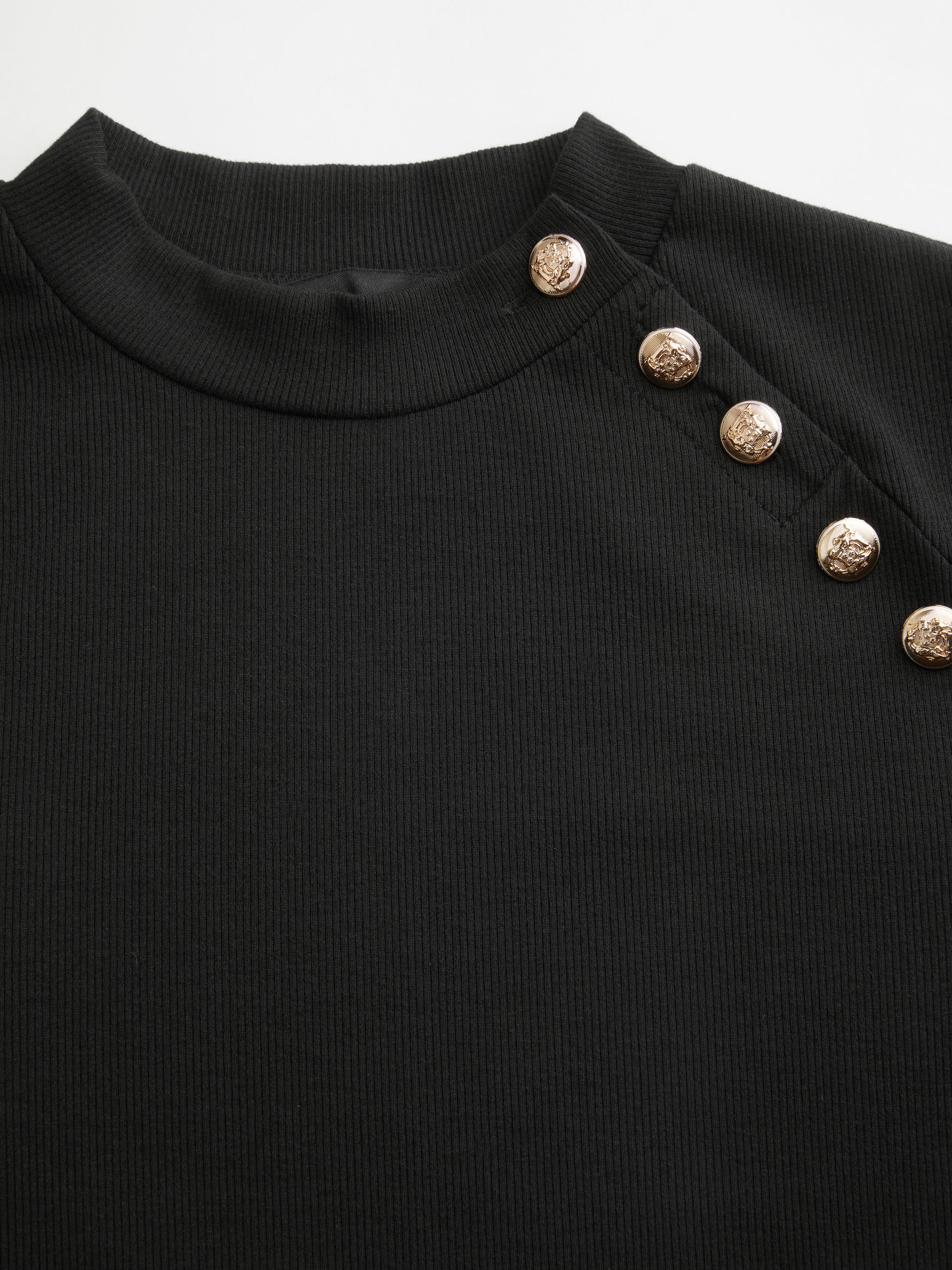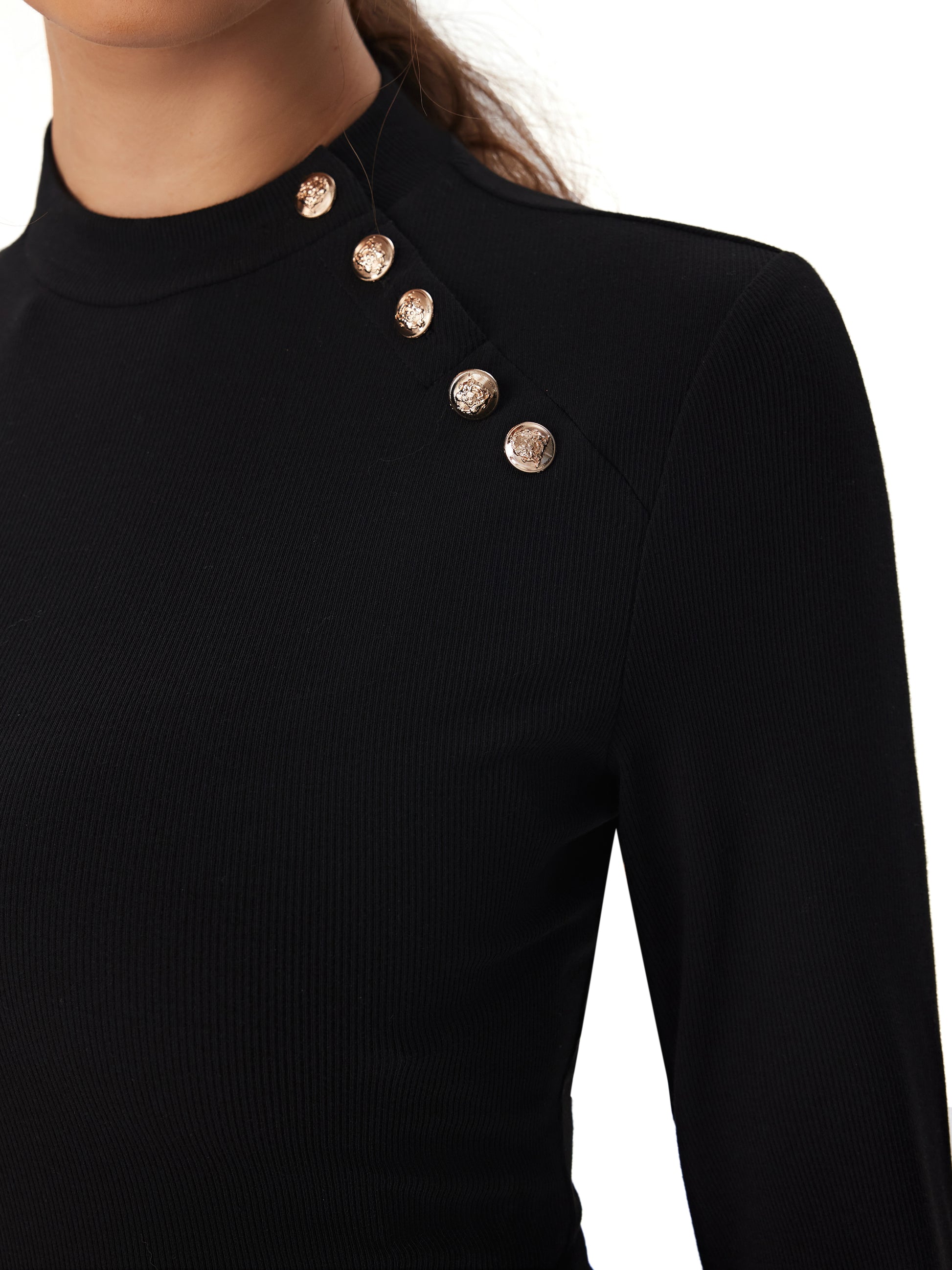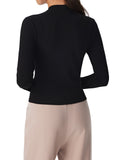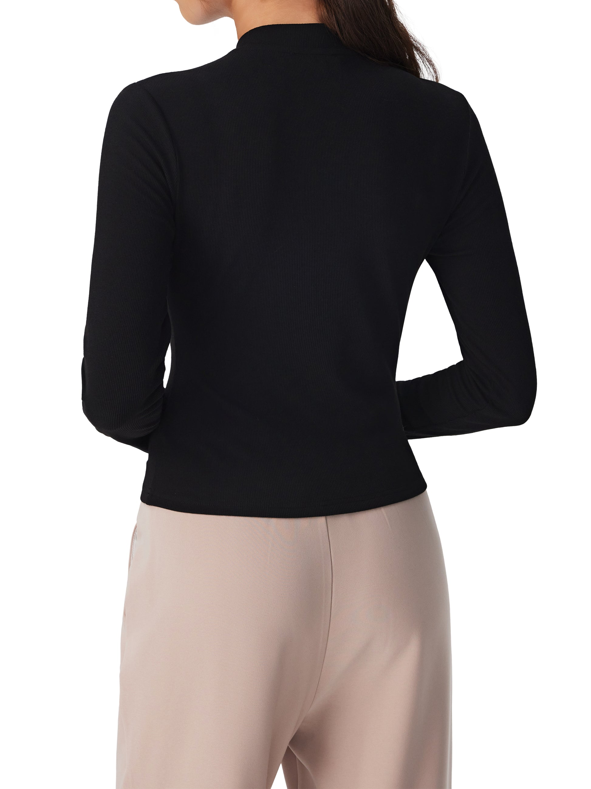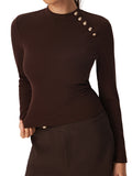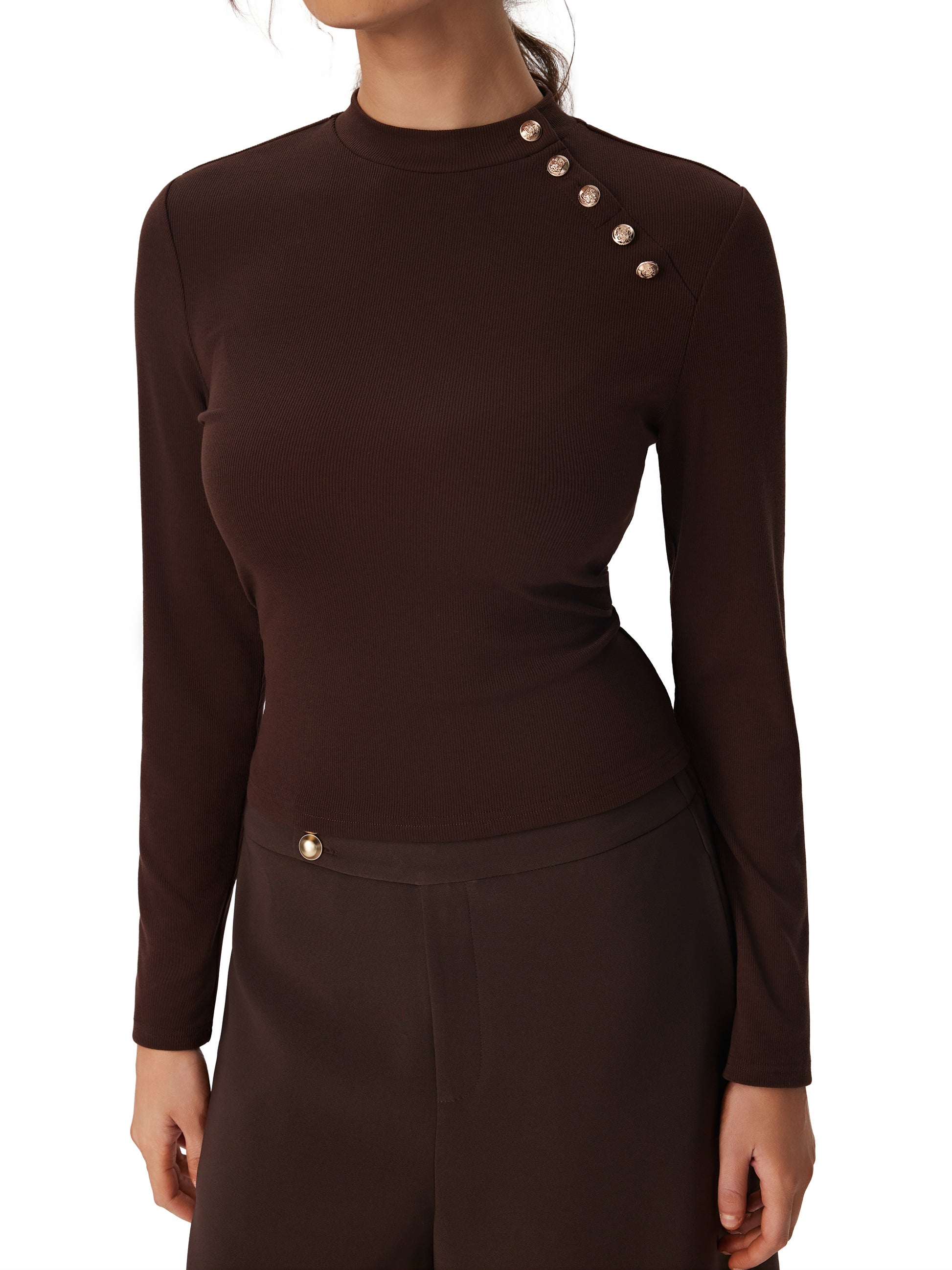 Womens Ribbed Knit Top Long Sleeve Mock Neck Shirt Button Detail Blouse