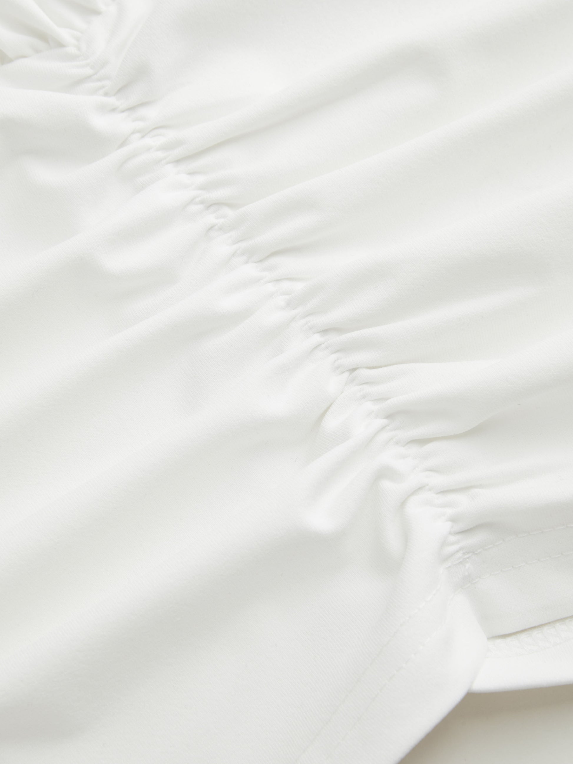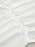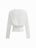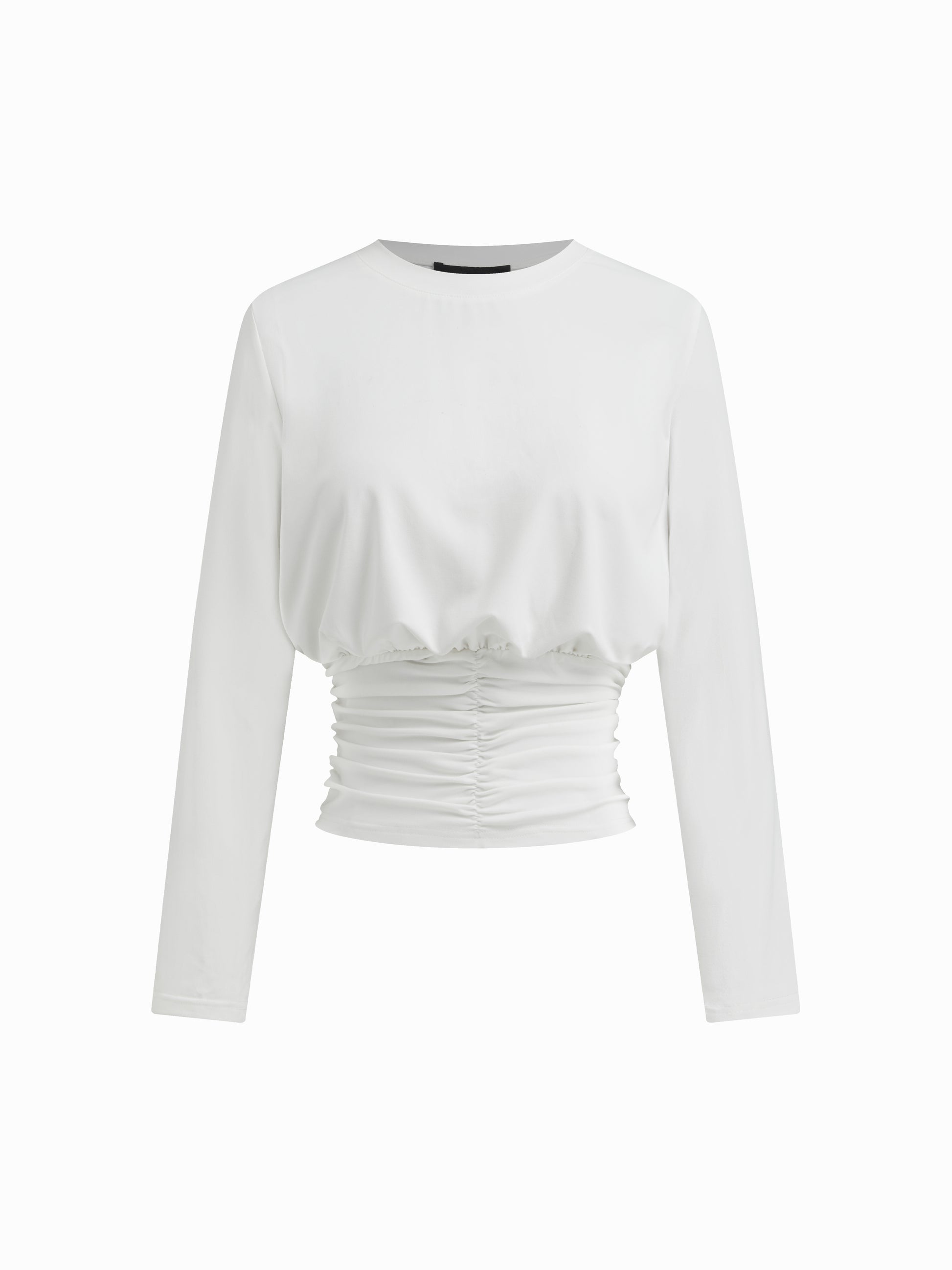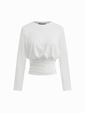 Women's White Long Sleeve Ruched Crew Neck Top Casual Blouse